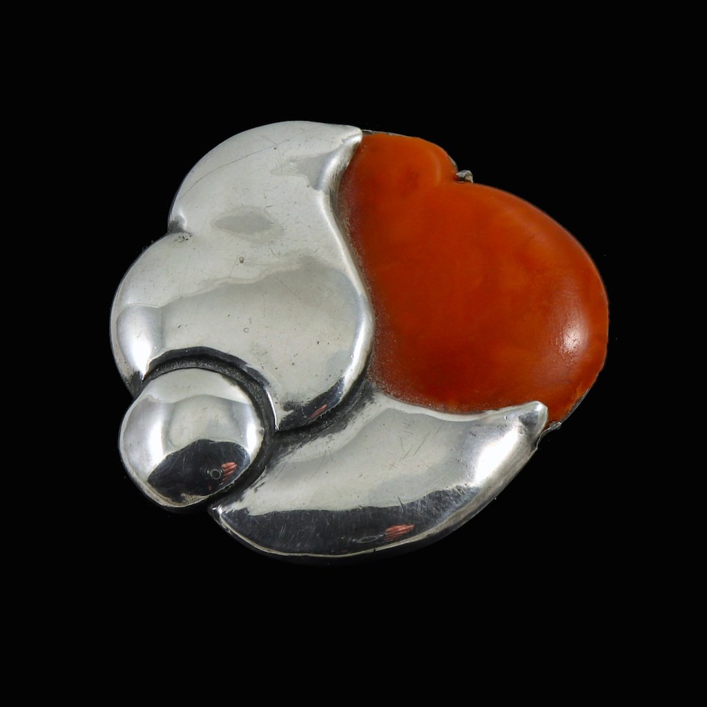 Thorvald Bindesbøll (1846-1908). Broche i Sølv med rav - Holger Kyster.