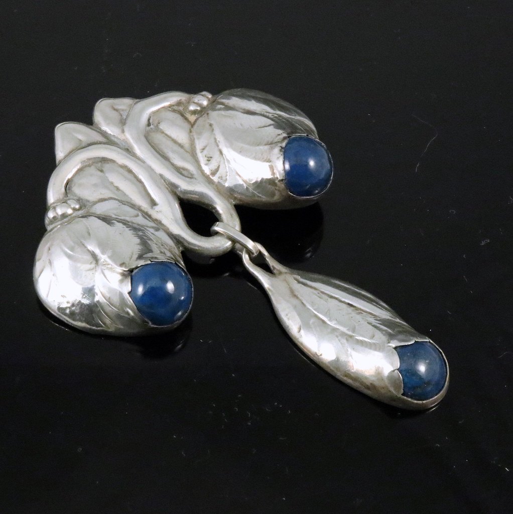 Evald Nielsen. Skønvirke Broche i Sølv med Lapis lazuli.
