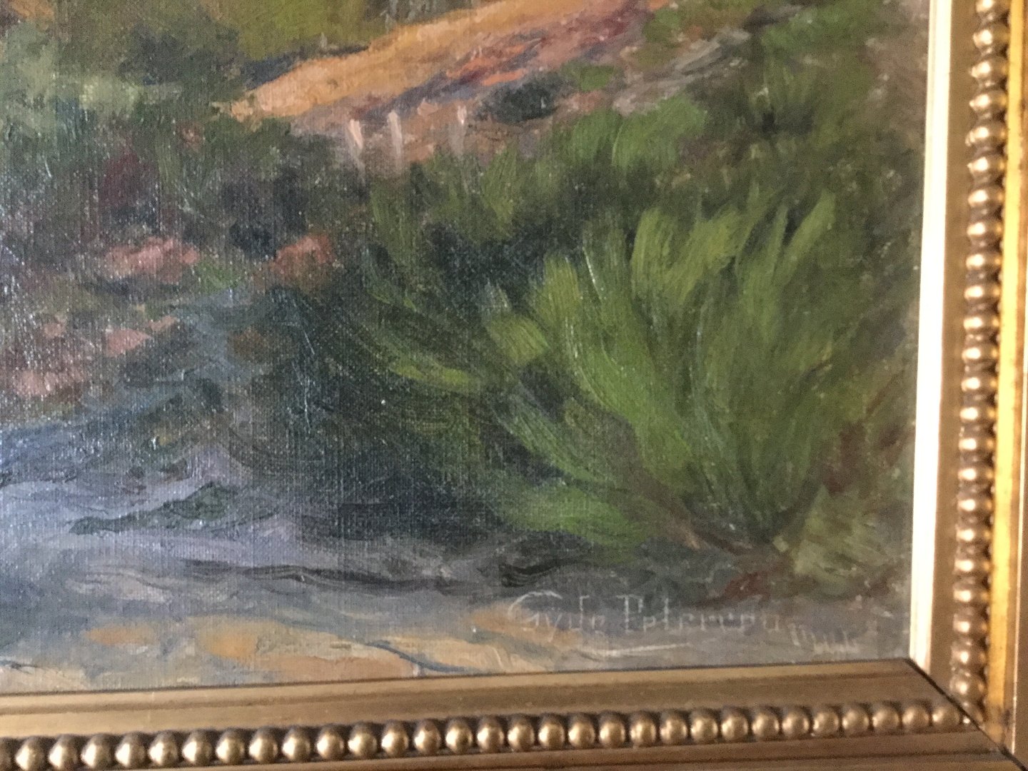 Bagpå flere auktionsmærkater samt teksten "Tilhører Gyde Petersen".