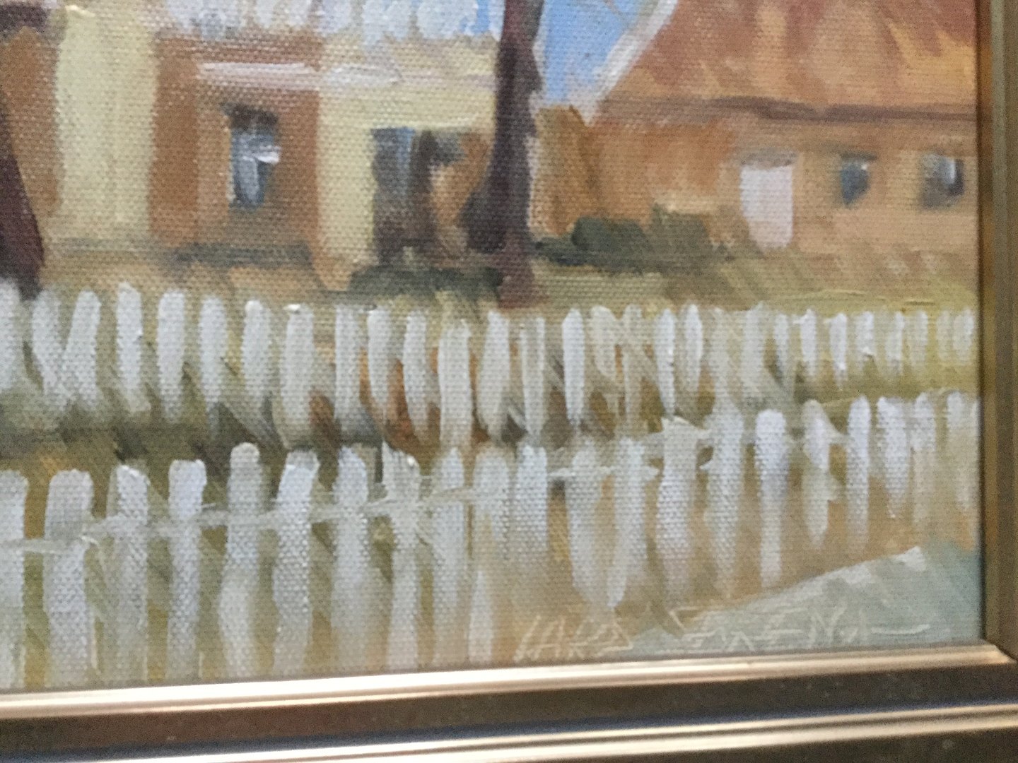 Maleri af Lars Serena - Huse på Skagen 1991.