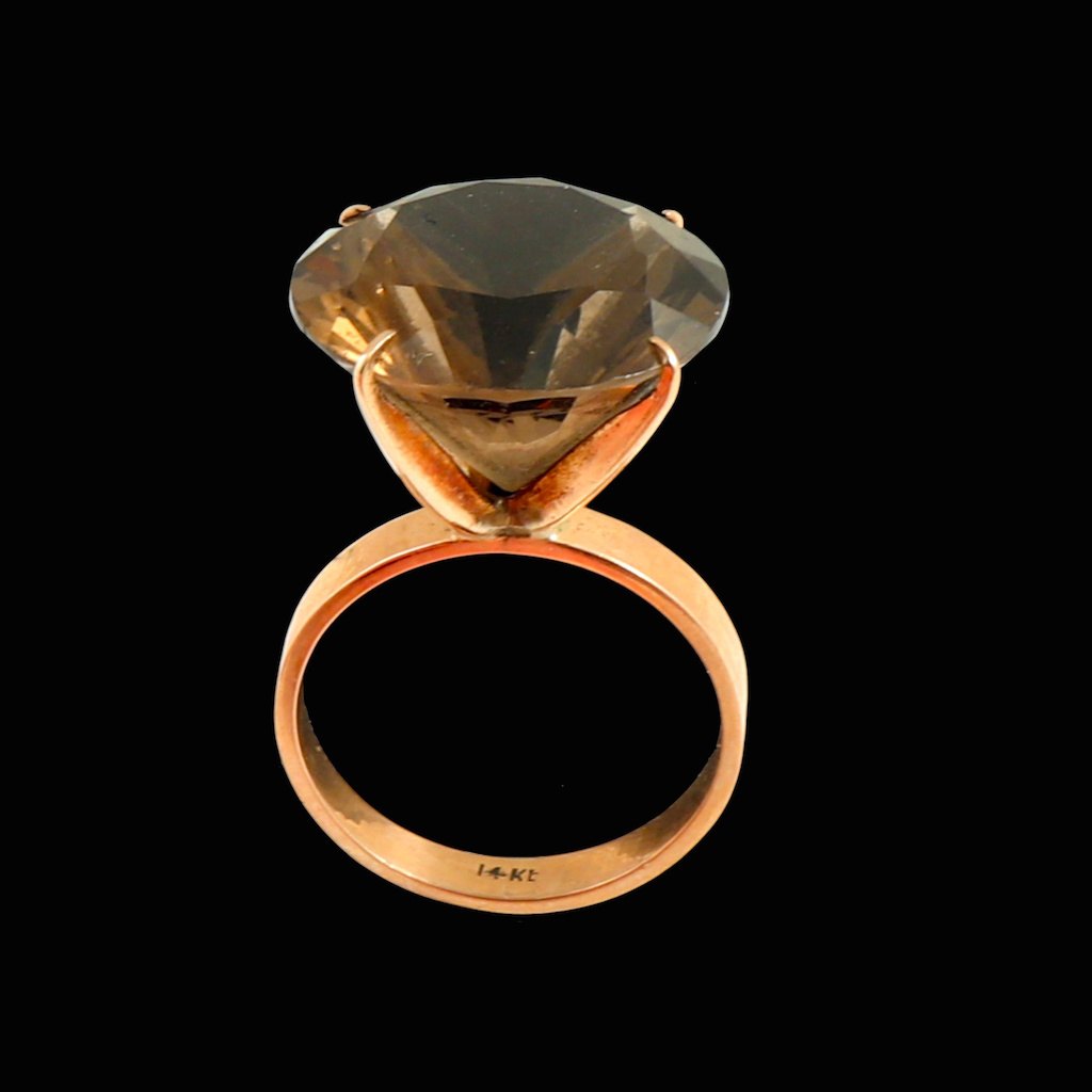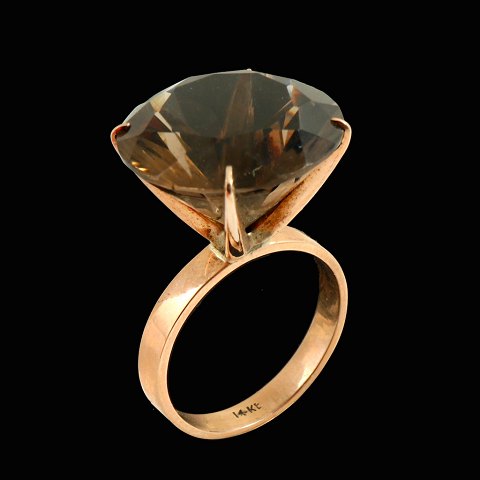 Cocktailring i 14k rosaguld med Røgkvarts.