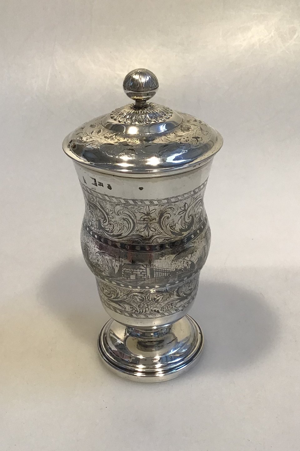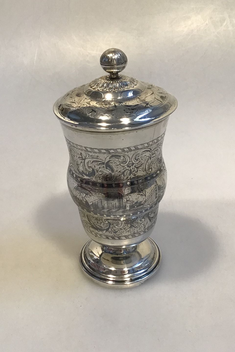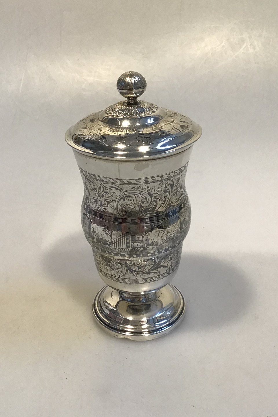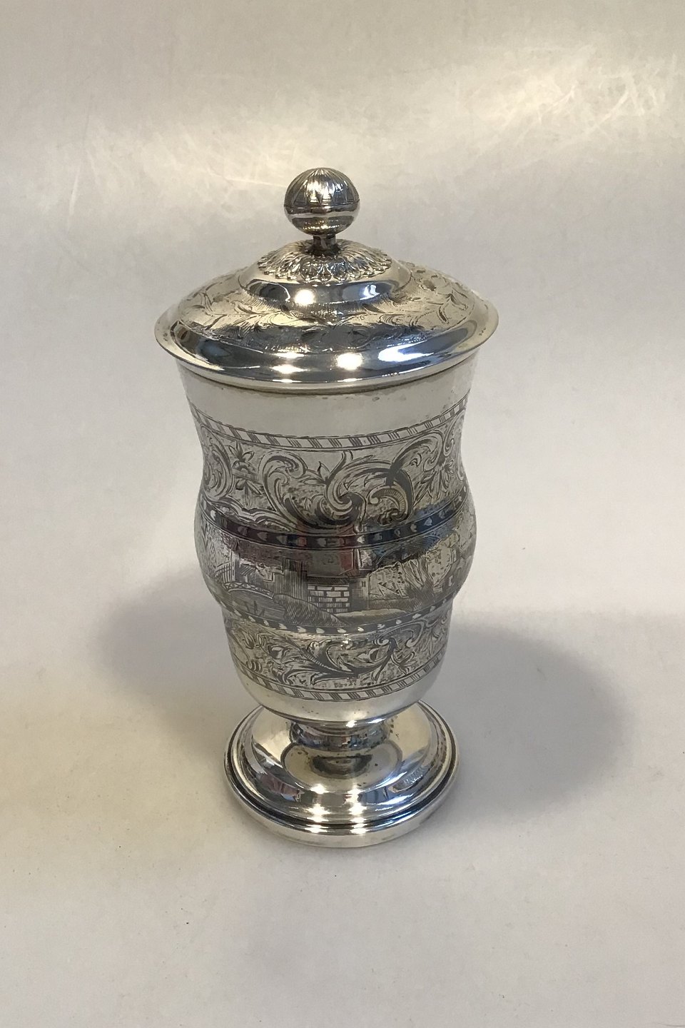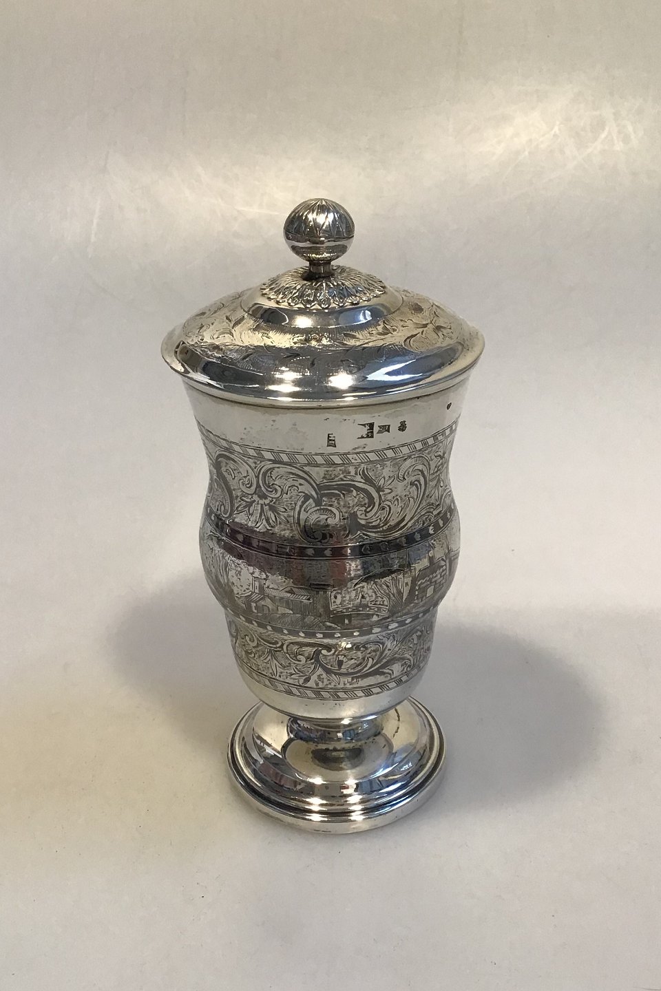 Russisk Sølv Lågpokal Niello Dekoration Indvendig forgyldt Måler 16.5 cm Vægt 210 gr Svenske Importmærker