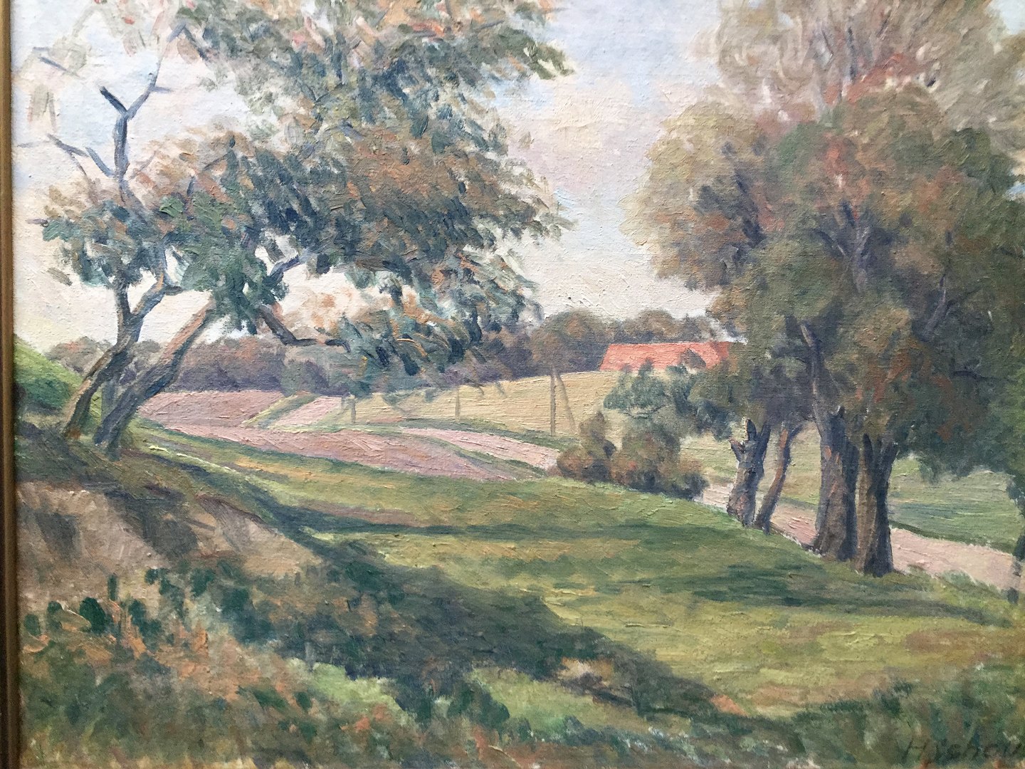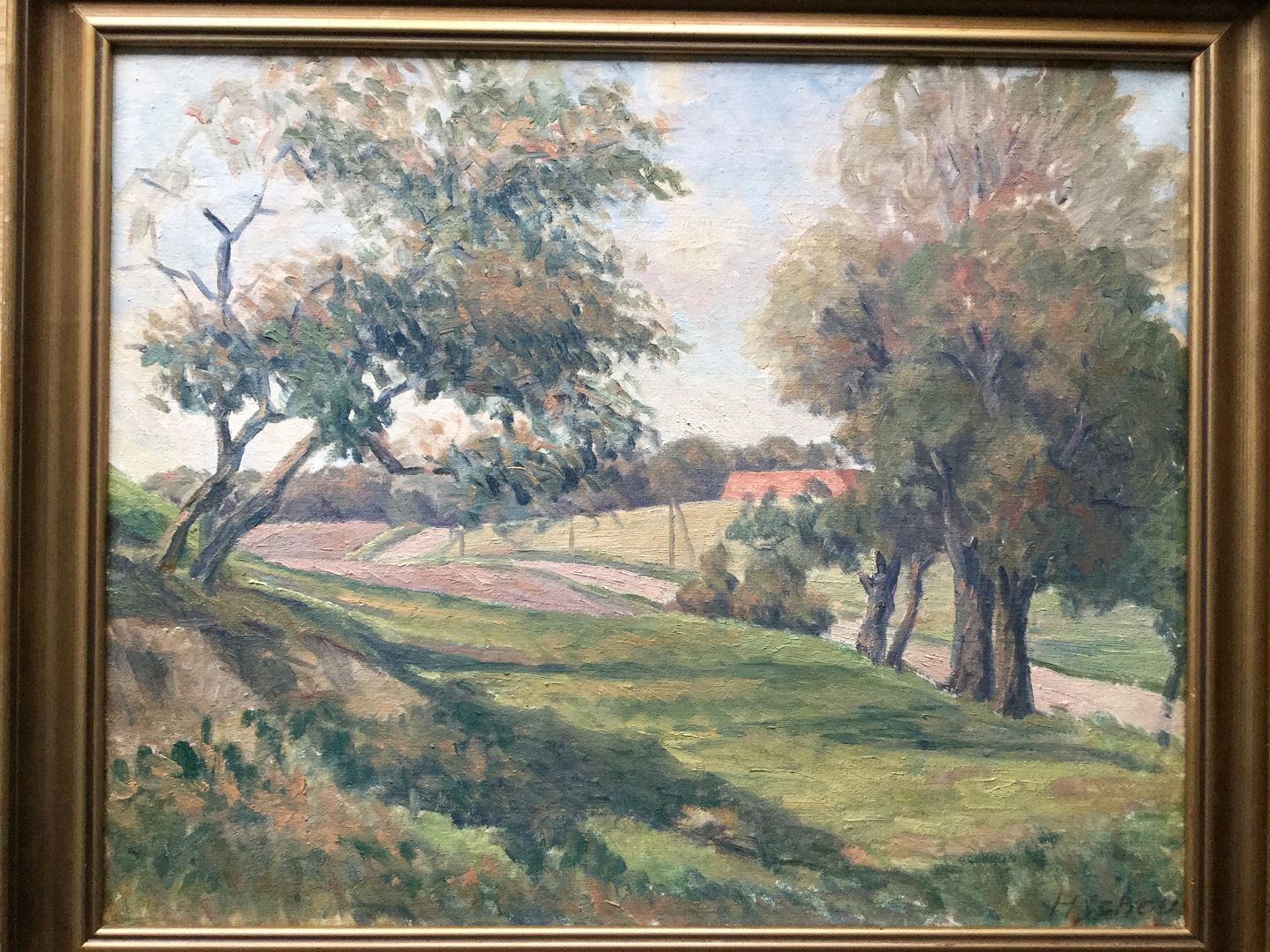 Maleri af Harry Schou - Parti fra Vinkelvej ved Viborg 1944.