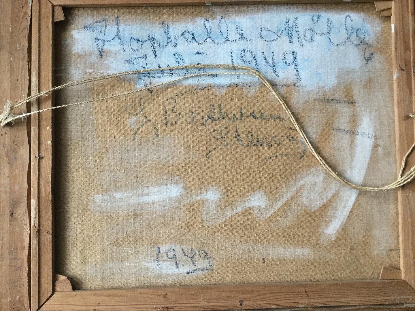 Bagpå lærred: Hopballe Mølle juli 1949 - S. Berthelsen Stenvig.