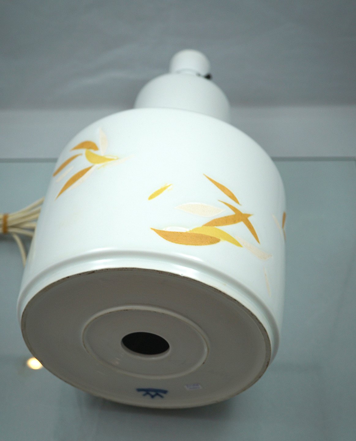 Royal Cohenhagen. Unika bordlampe. Lampen er dekoreret med så lyse og karryfarvet blade.