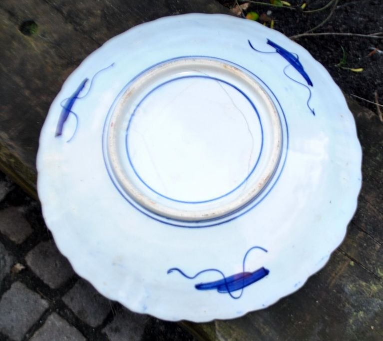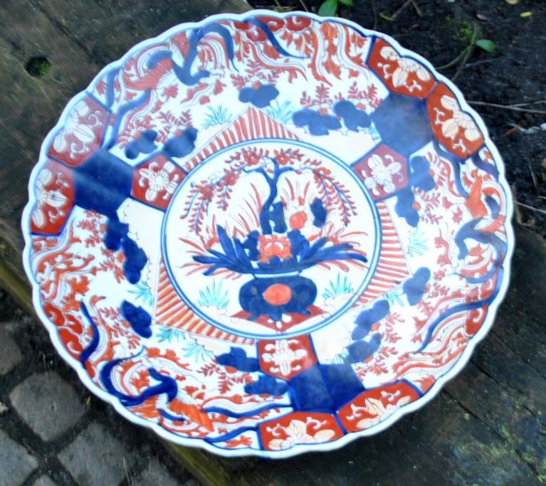 Japansk imari fad med flæset kant, 19. årh. Hånddekoreret. Dia.: 31 cm.