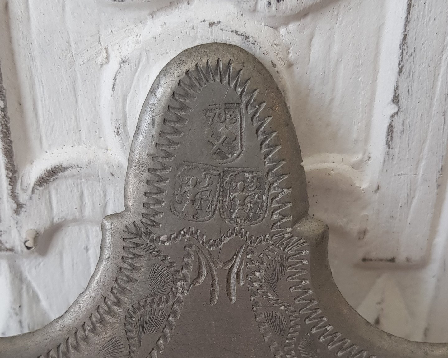 Stemplet 1708 - fremstår med datering og ejerinitialer.