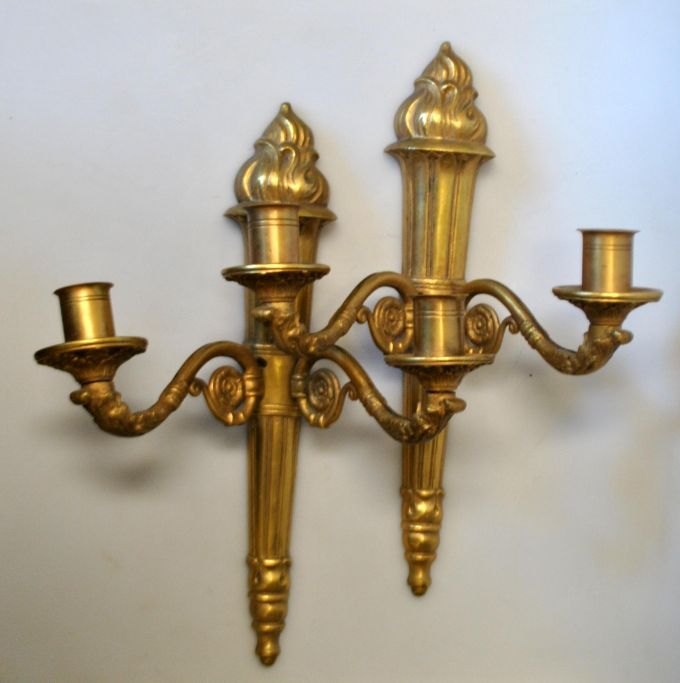 Et par franske bronze lampetter, 20. årh. Design i form af fakkel. Kan monteres til el. H: 36 cm. B.: 24 cm.