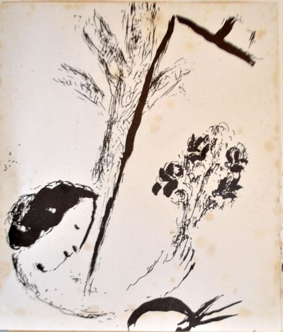 Chagall, Marc (1887 - 1985) Rusland/Frankrig: Komposition med kvinde med buket. Usigneret. 23 x 20 cm.