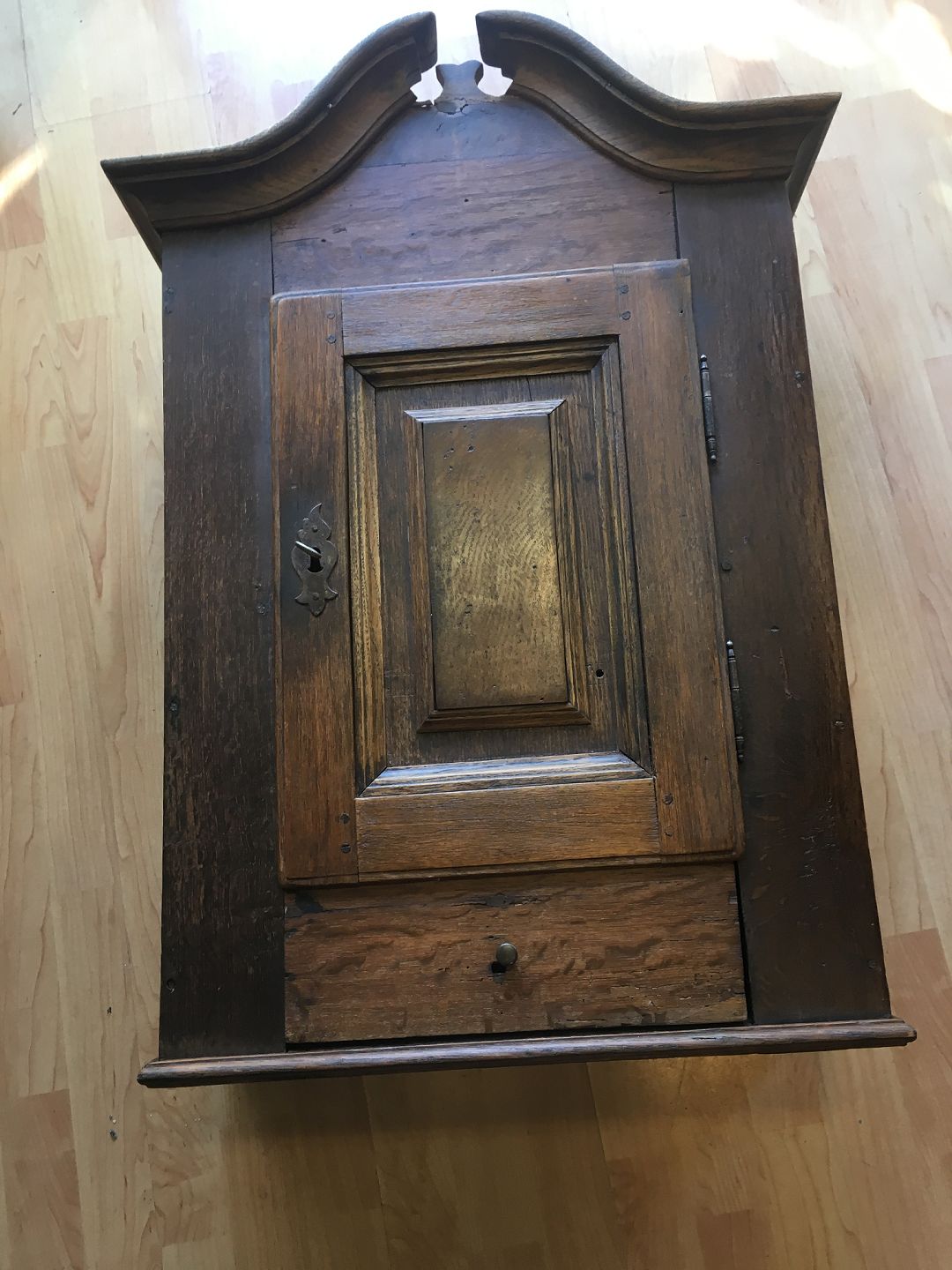 Gammelt Barok Hænge skab med svanehals.