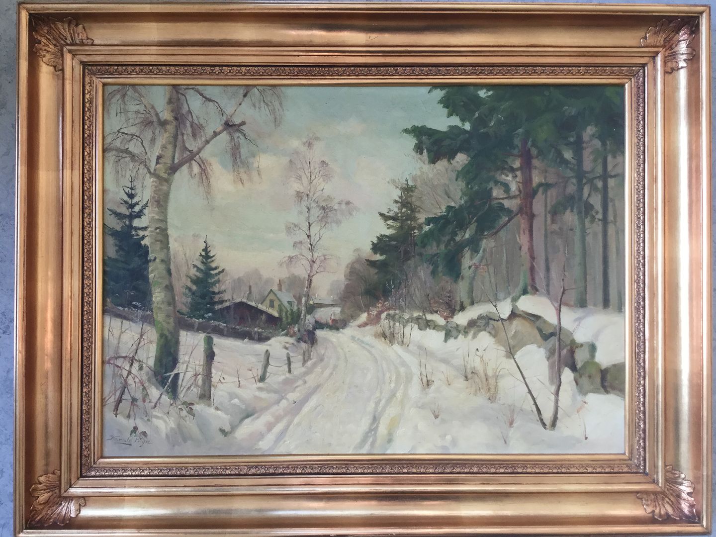 Maleri af Harald Pryn - Vinterparti fra Hareskoven.