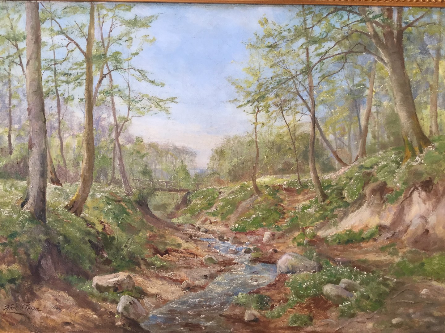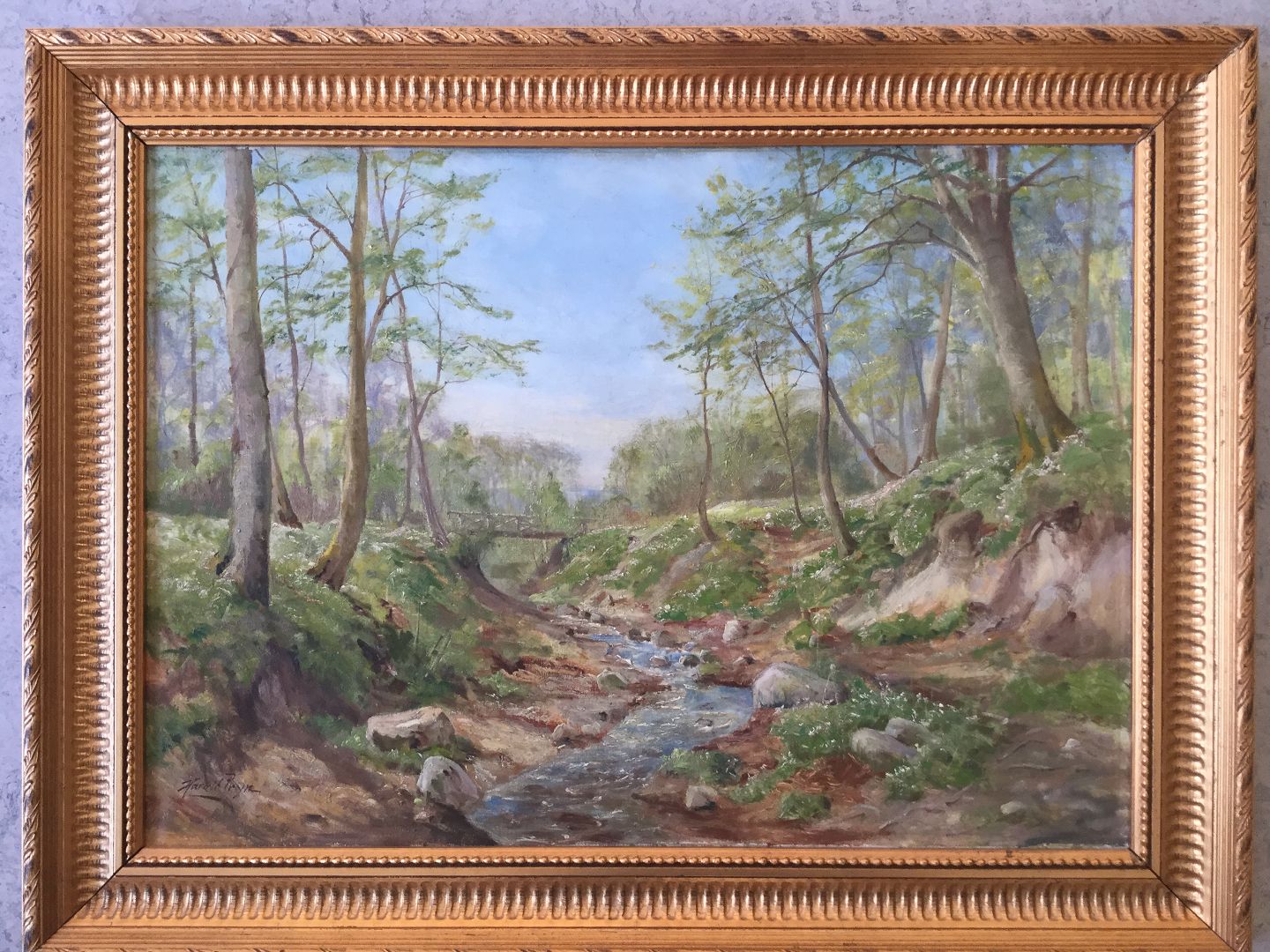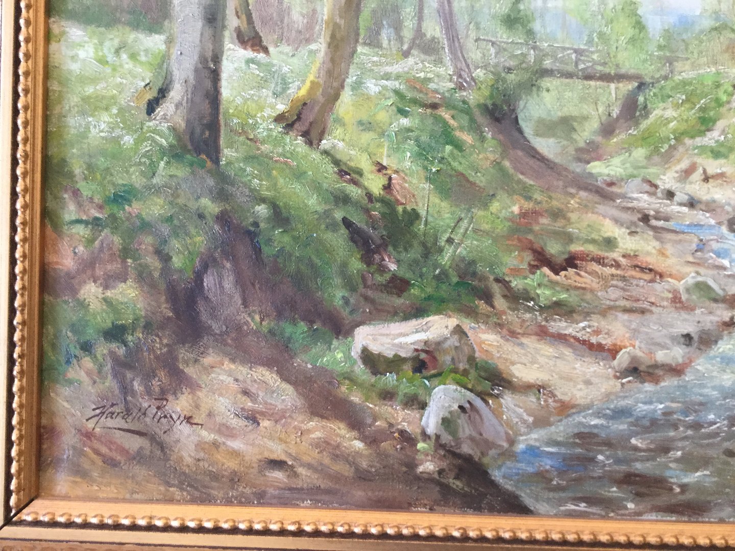 Maleri af Harald Pryn - Skovparti med rindende å.