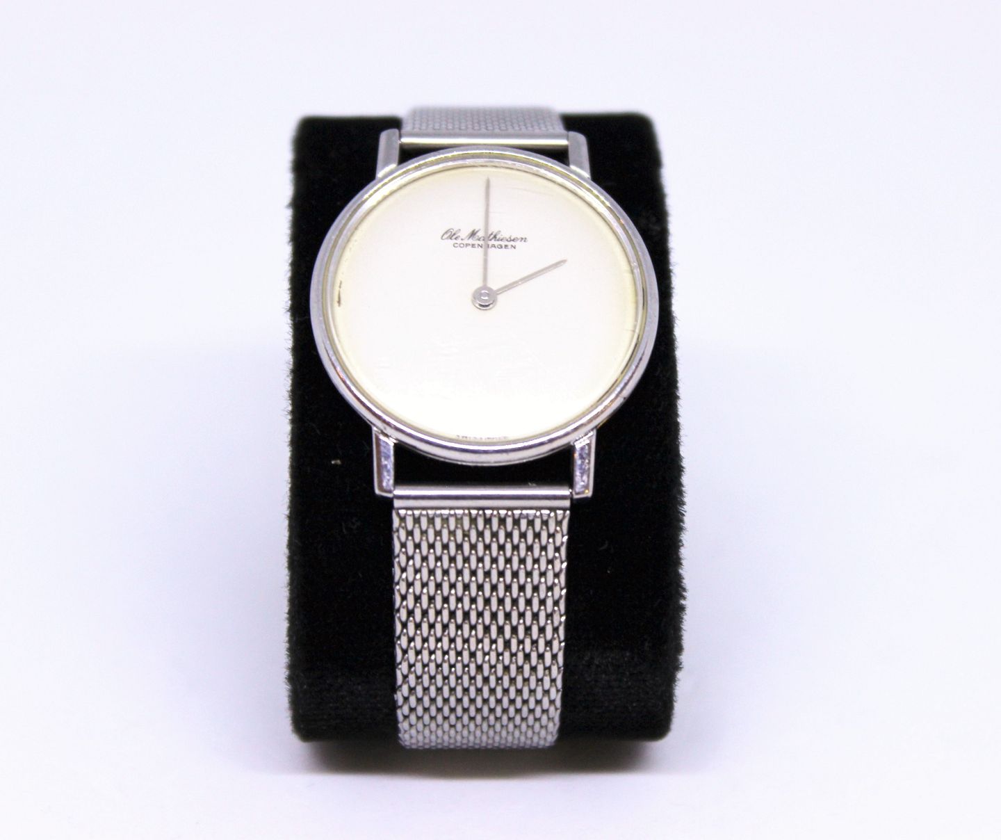 Ole Mathiesen Copenhagen Classic wristwatch swiss made with steel chain and quartz. The watch is 3 ATM water resistant and in great used condition.