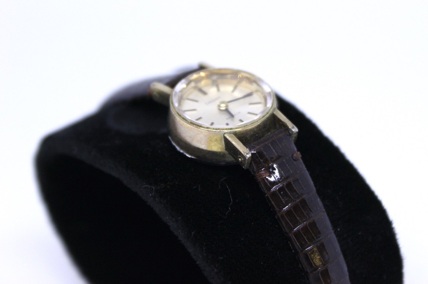 Tissot Saphir forgyldt dameur med schweizisk urværk og krokodille læder rem.