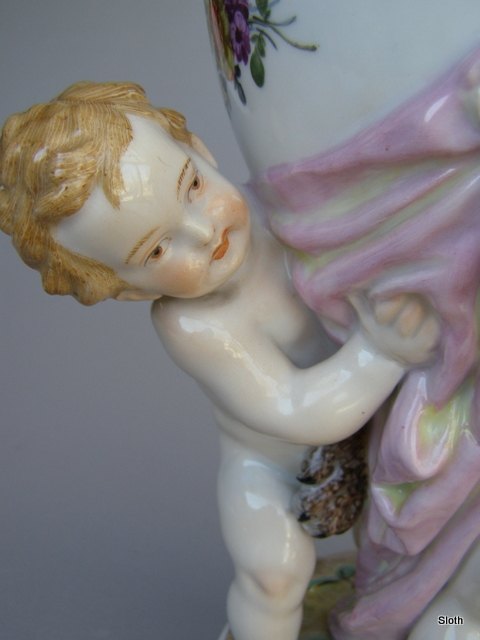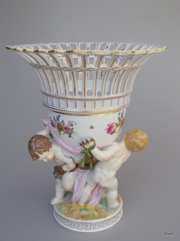 Stor Opsats med Putti og Blomster, Wiener Porcelæn H: 31 cm.