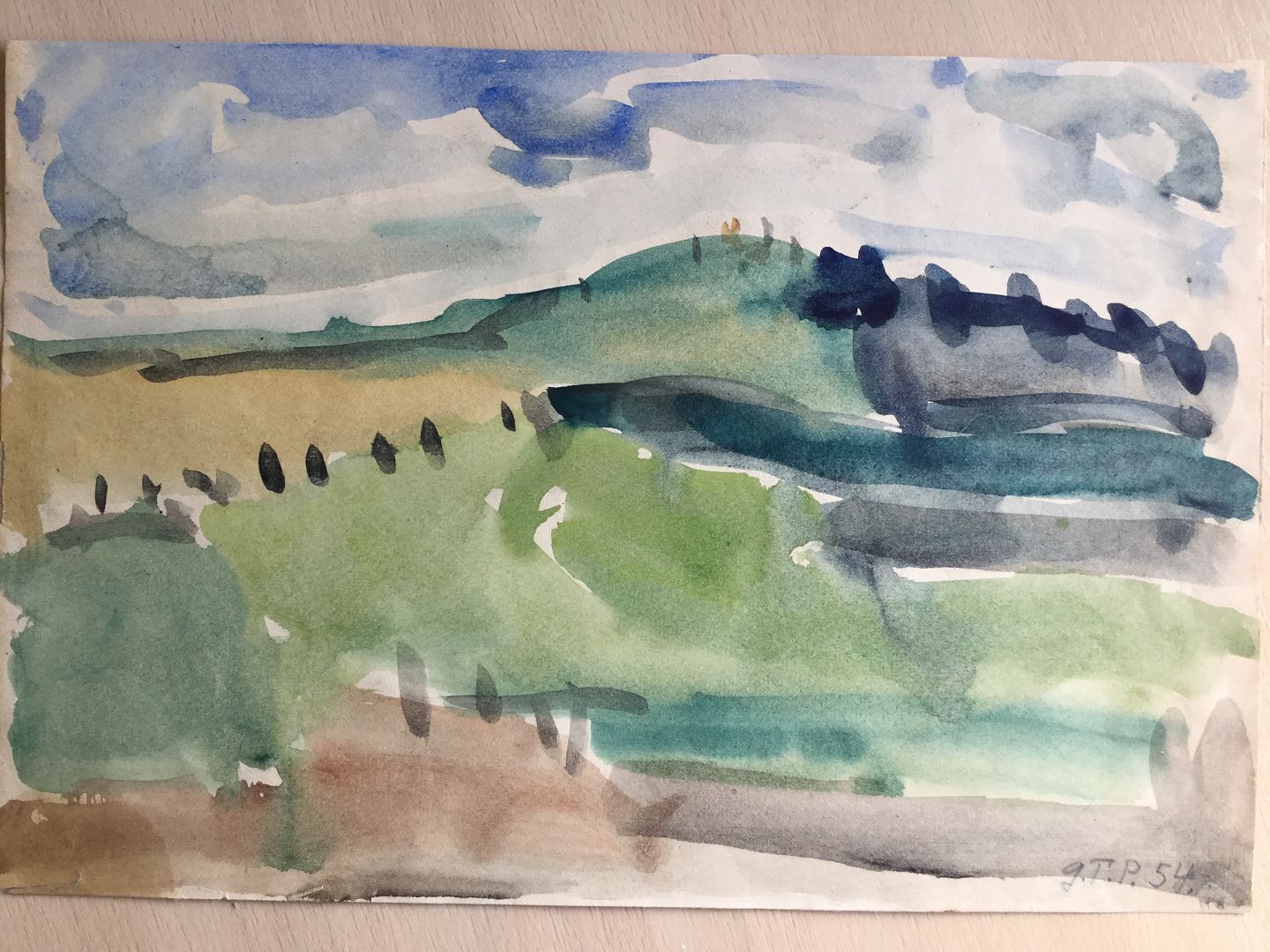 Akvarel af Georg Tscherning-Petersen 1954 - "Landskab"