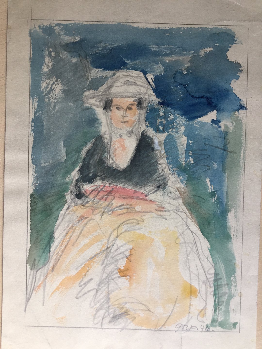 Tegning/akvarel af Georg Tscherning-Petersen 1945 - "Nøgen kvindemodel"