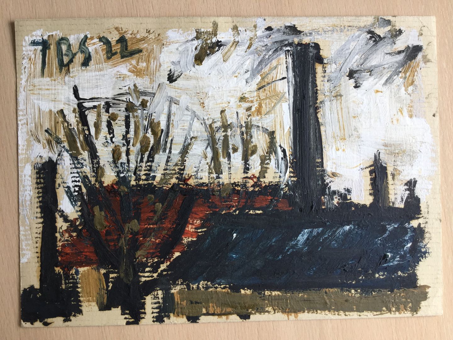 Pastel af Peder Brøndum Sørensen - "Hustage" 1972.
