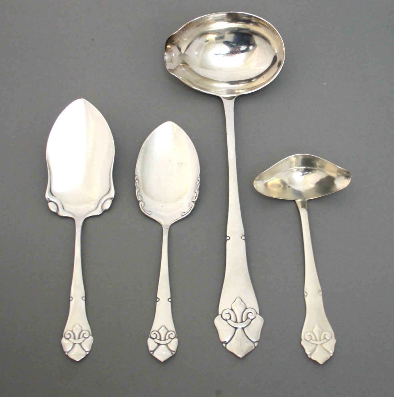 Fransk lilje, Atla, Trio, 2 tårnet sølvplet. Almindeligt brugsslid.