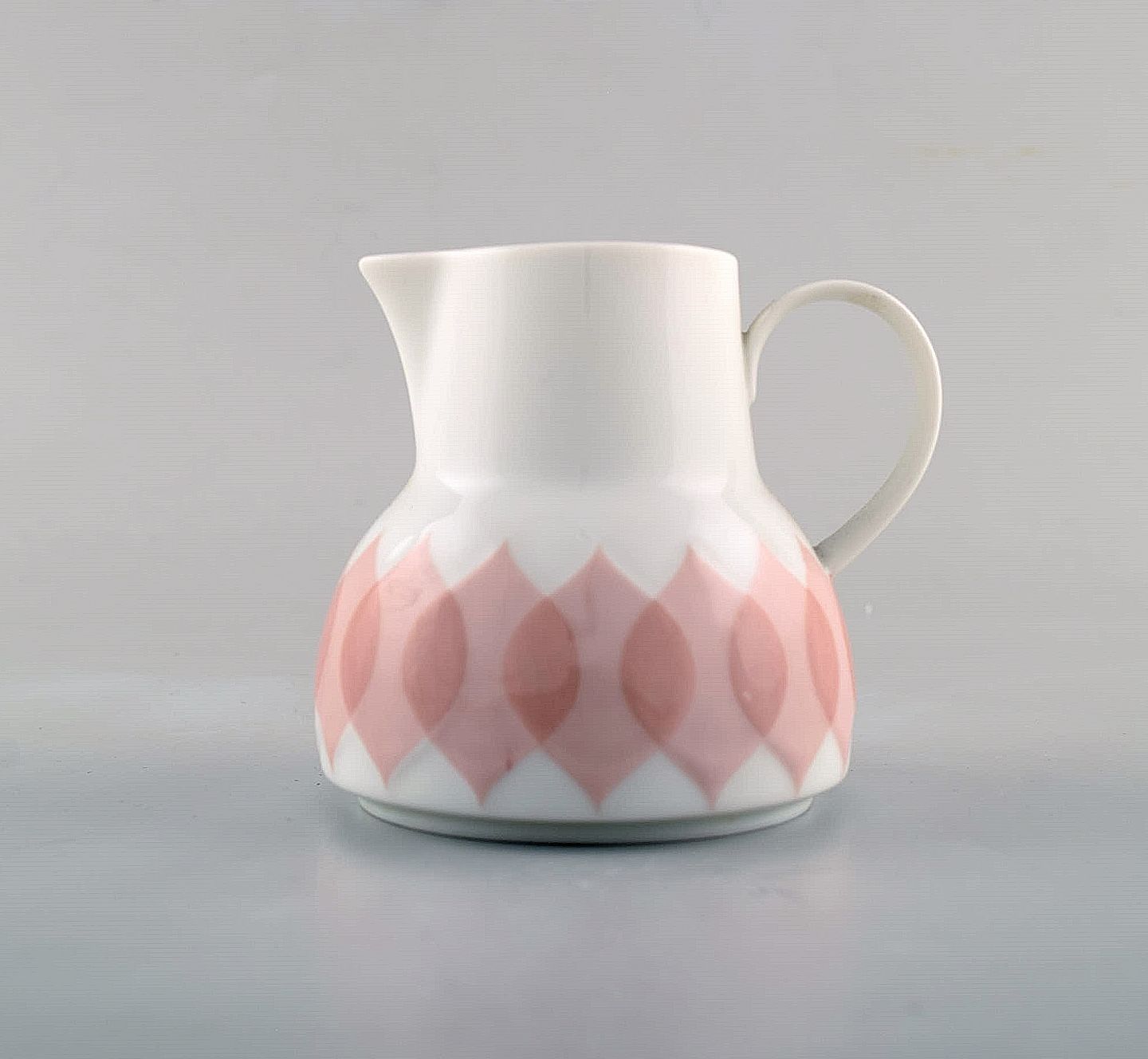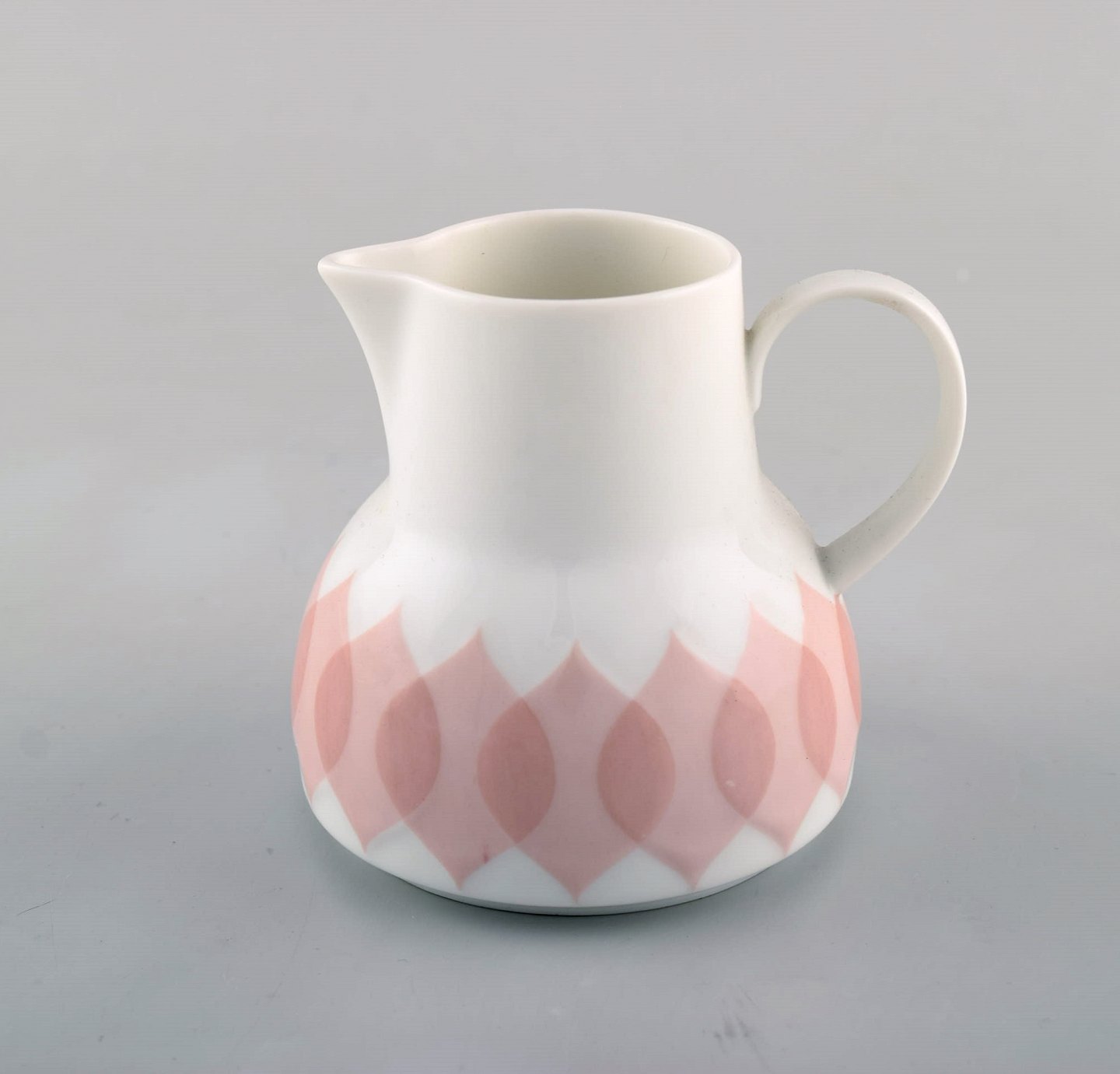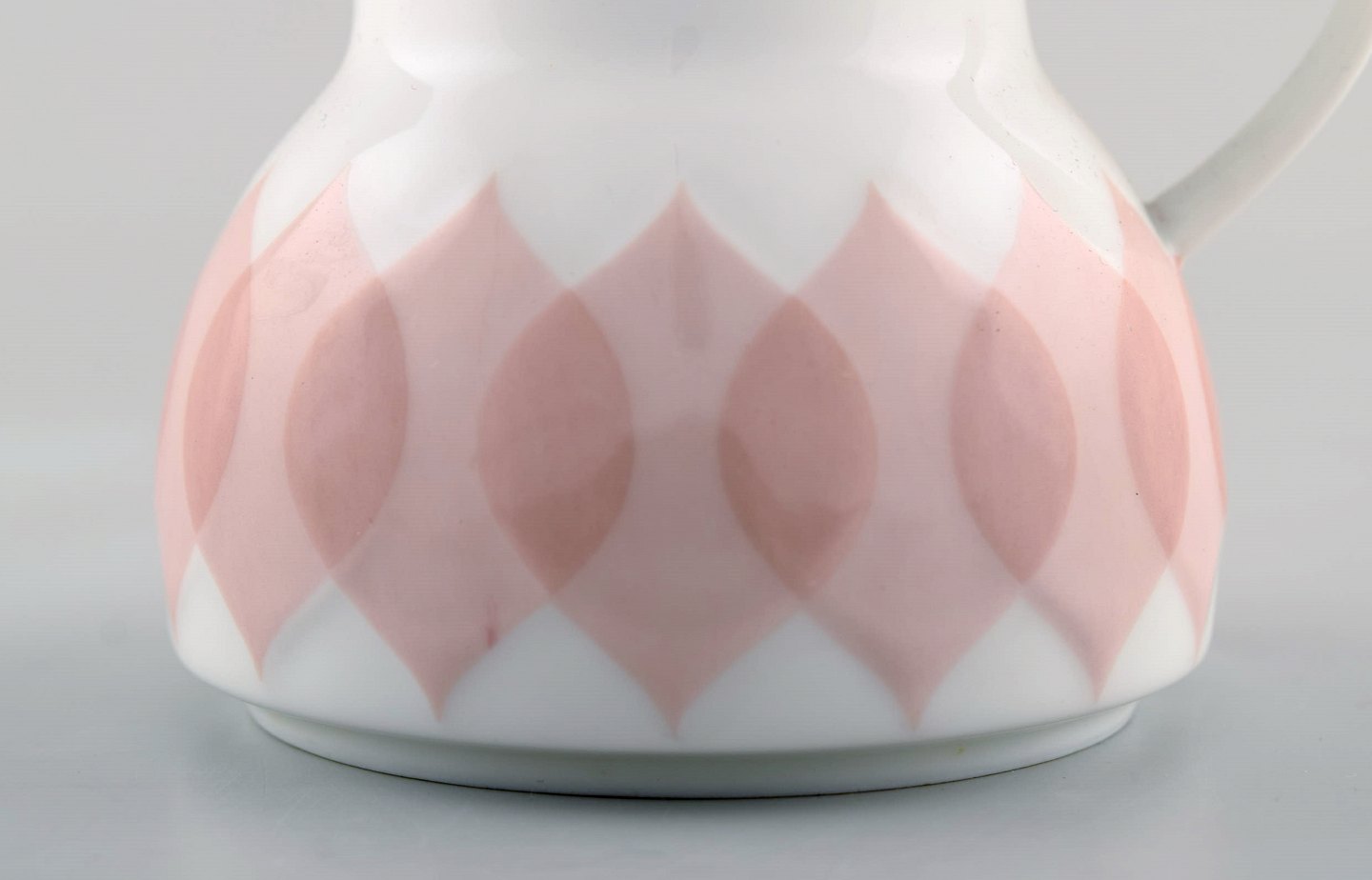 Bjørn Wiinblad for Rosenthal. "Lotus" porcelain service. Creamer decorated with pink lotus leaves. 1980's.