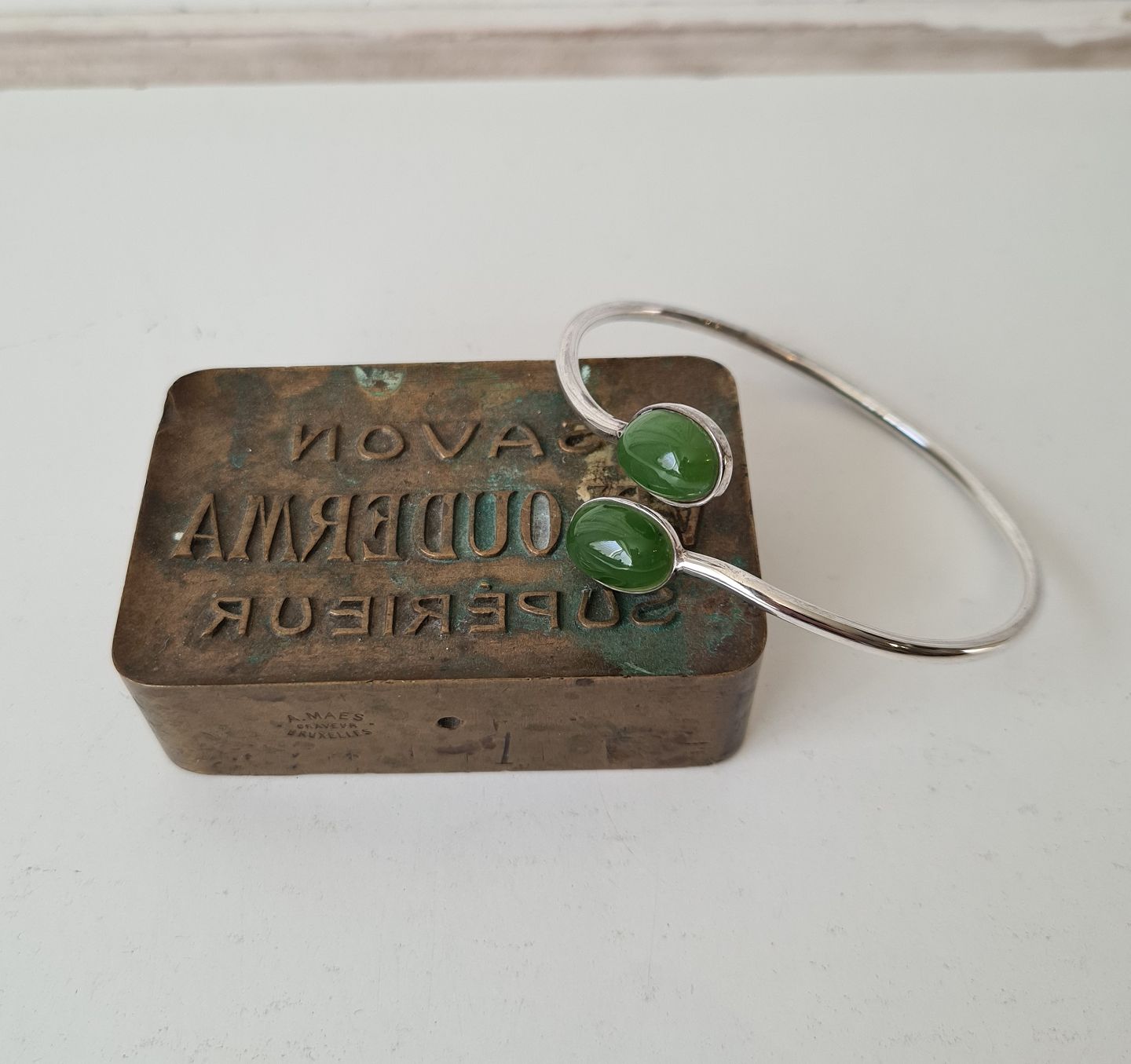W&S.Sørensen armring i sølv med cabochon slebet jade