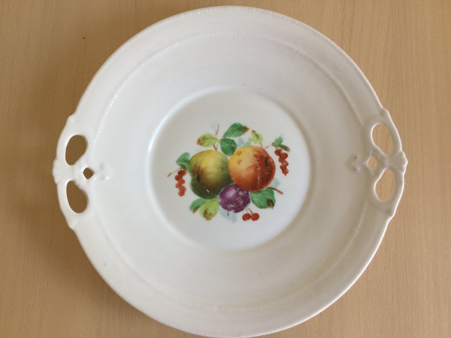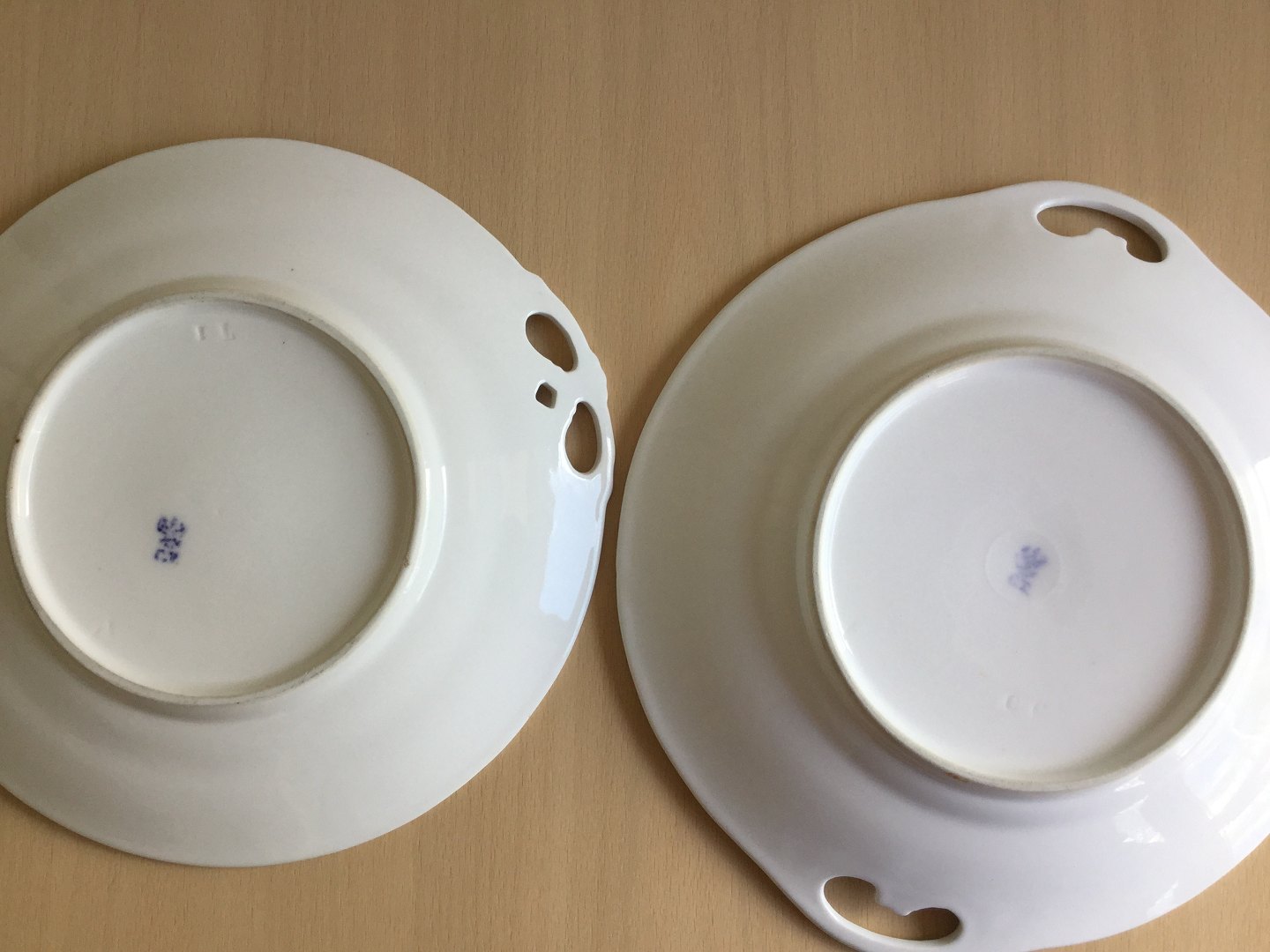 2 antikke CT porcelænsfade med gennembr. hanke.