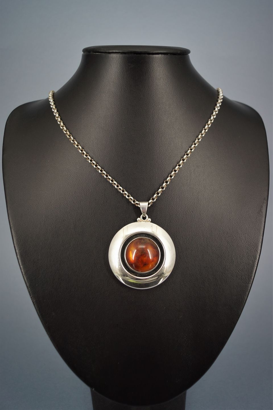 Niels Erik From; Halskæde i sterling sølv, prydet med rav. (lille skade på rav)