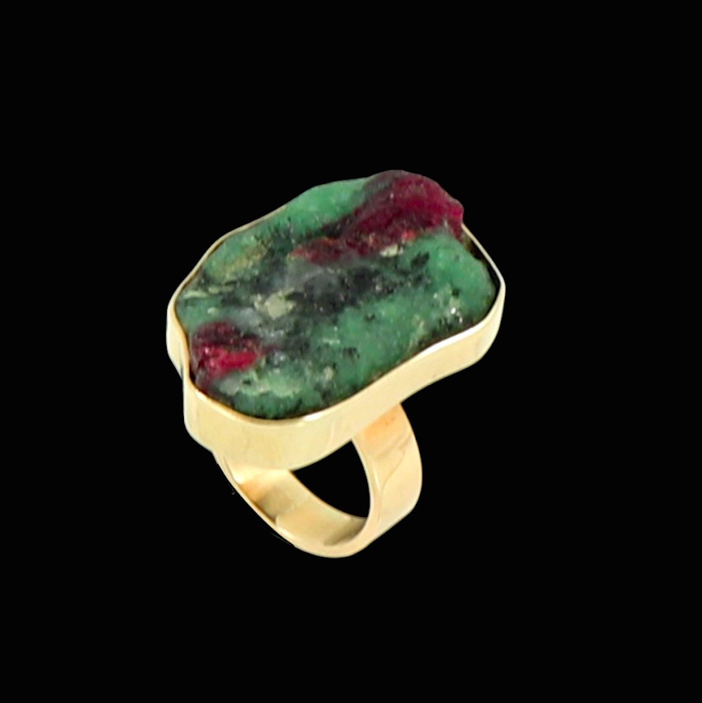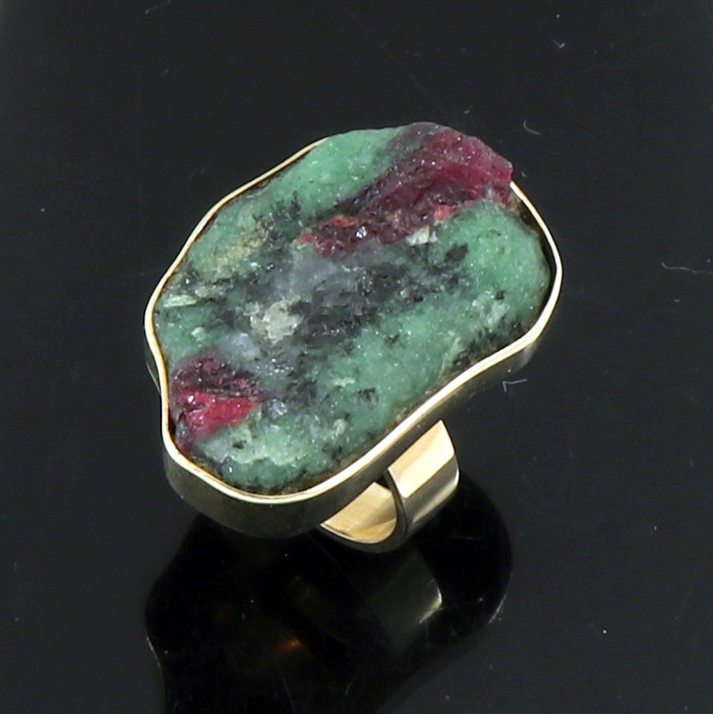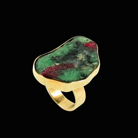 Danish 14k Gold Ring with Ruby Zoisite. 1960s.