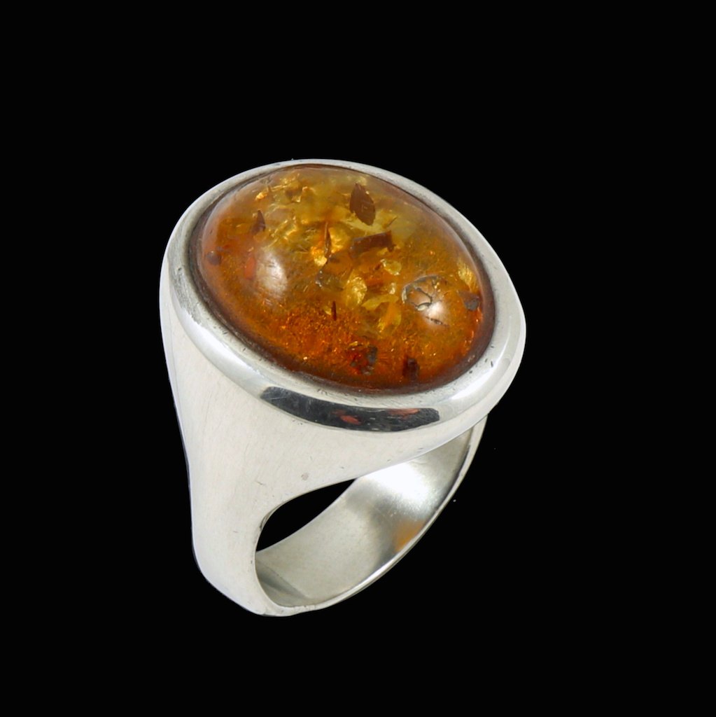 W. & S. Sørensen - Denmark. Sterling Silver Ring with Amber.
