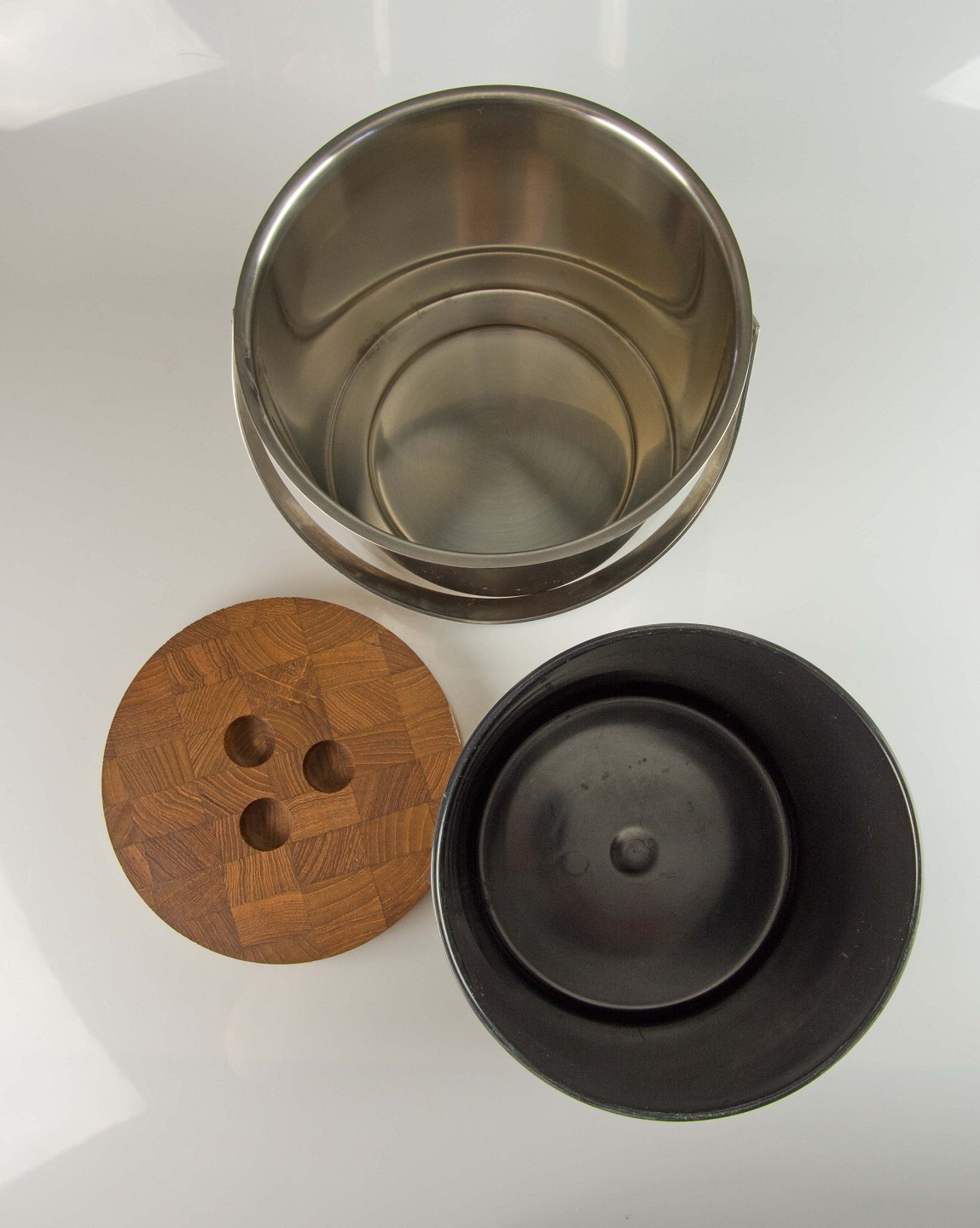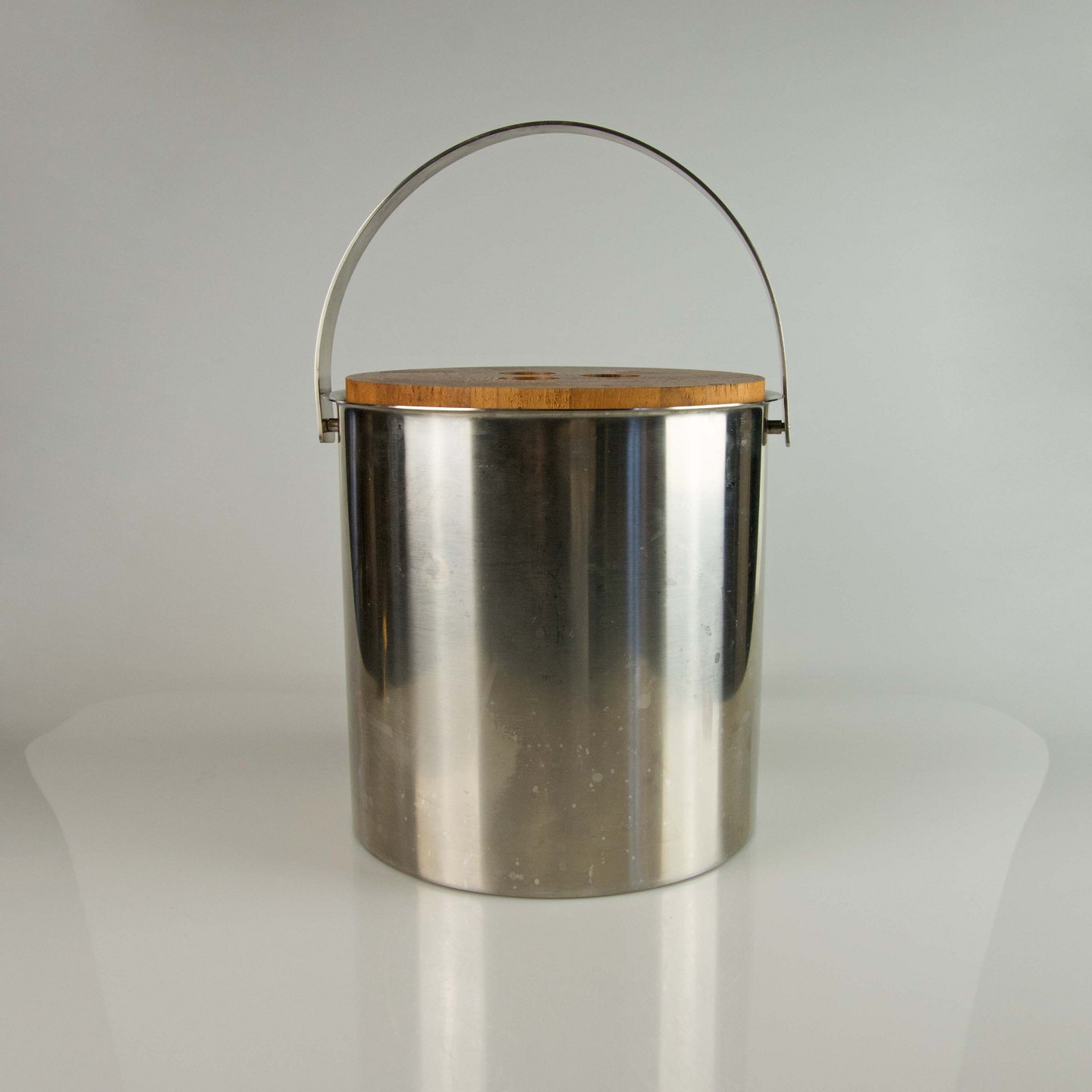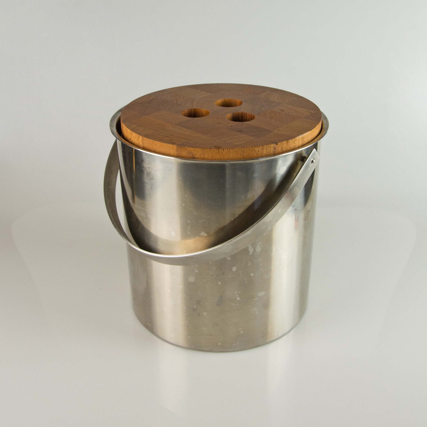 Isspand i rustfrit stål med låg af teaktræ no. 800/35