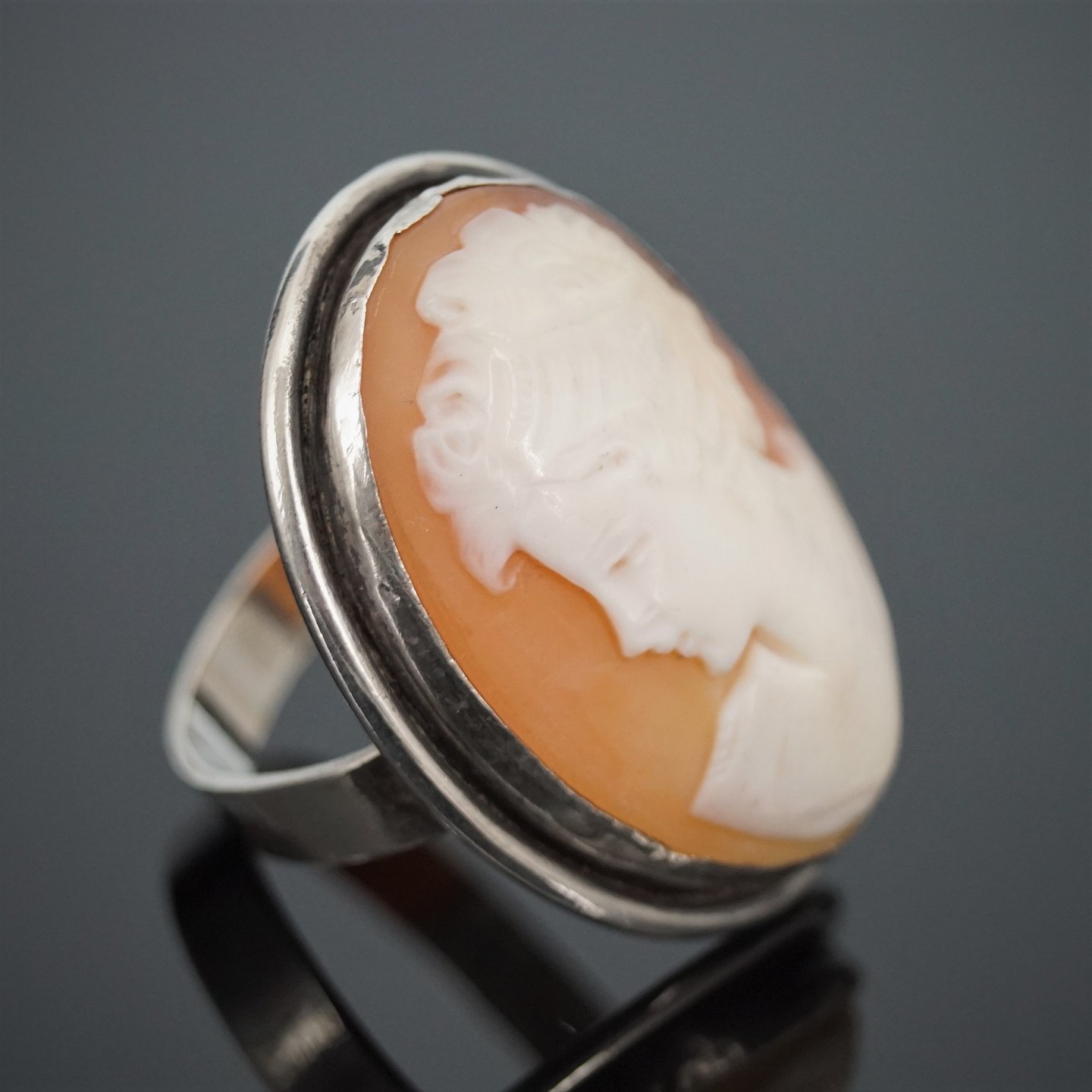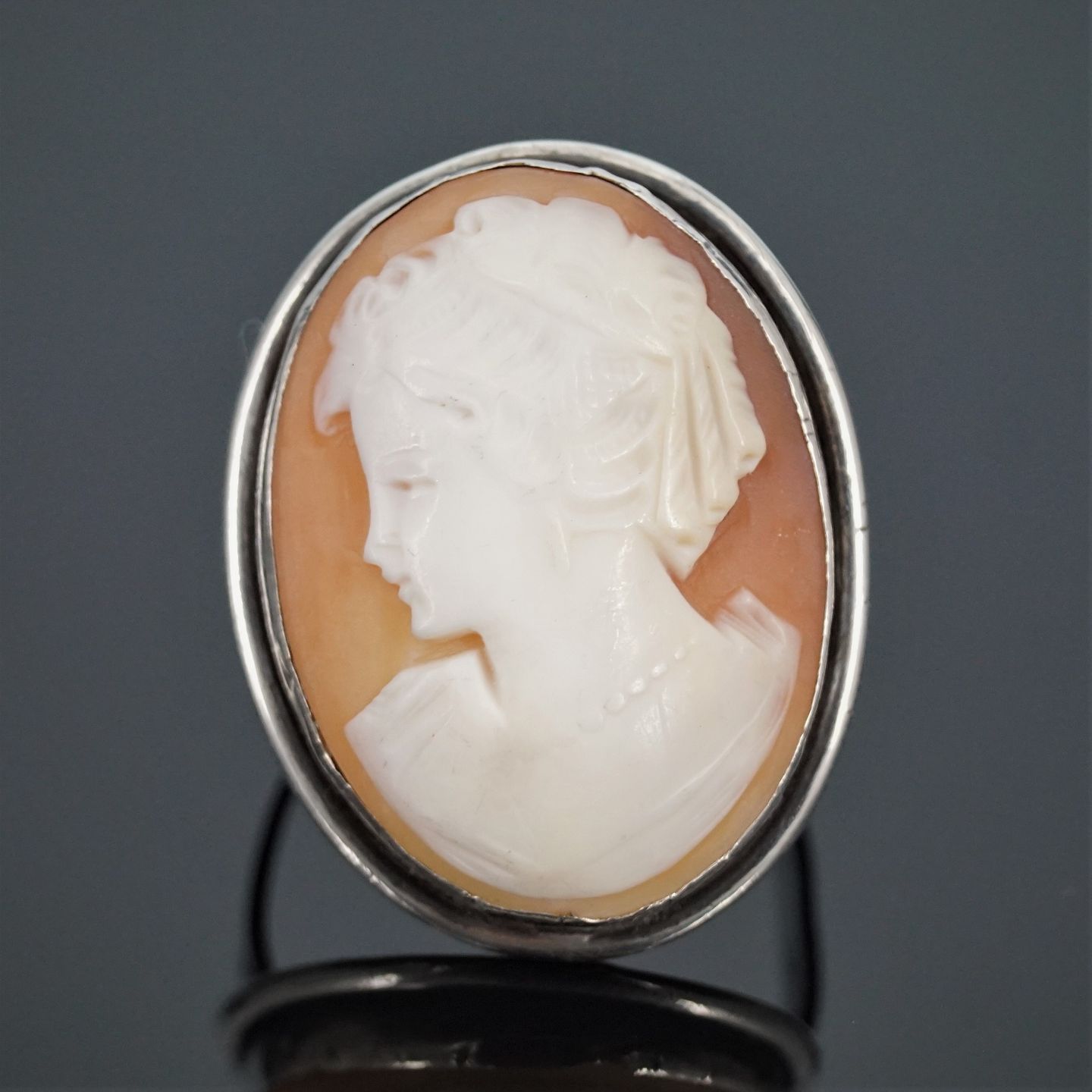 A ring, set with a cameo, mounted in silver. Ring size app. 62.