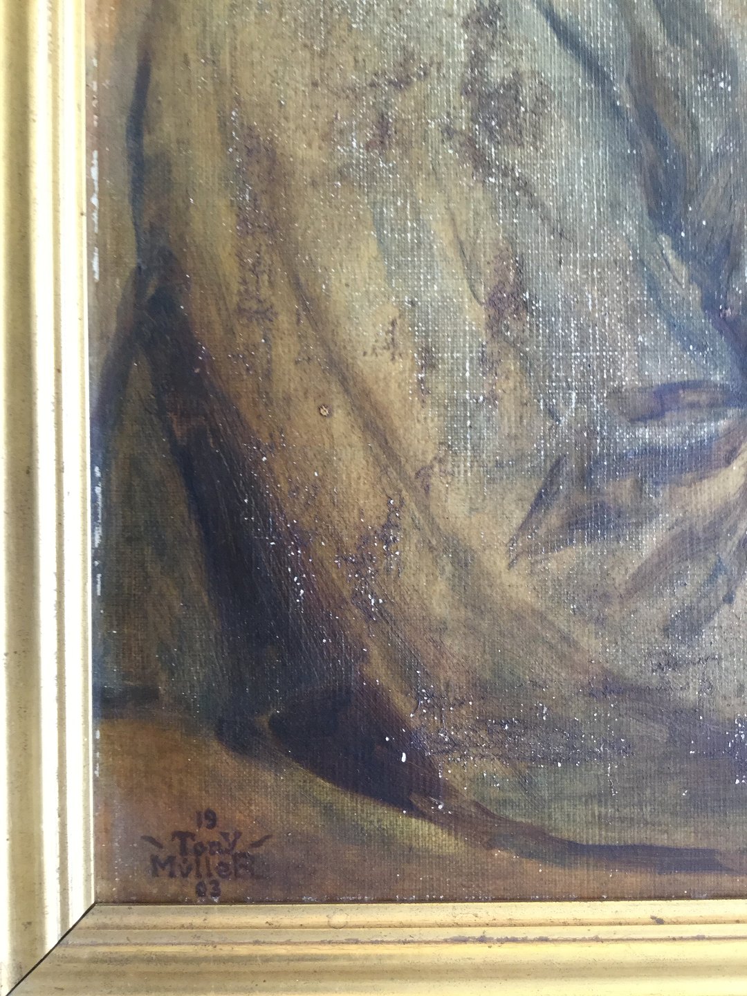 Maleriet fremstår lidt "tynd" i malingen, sikkert pga rensning.