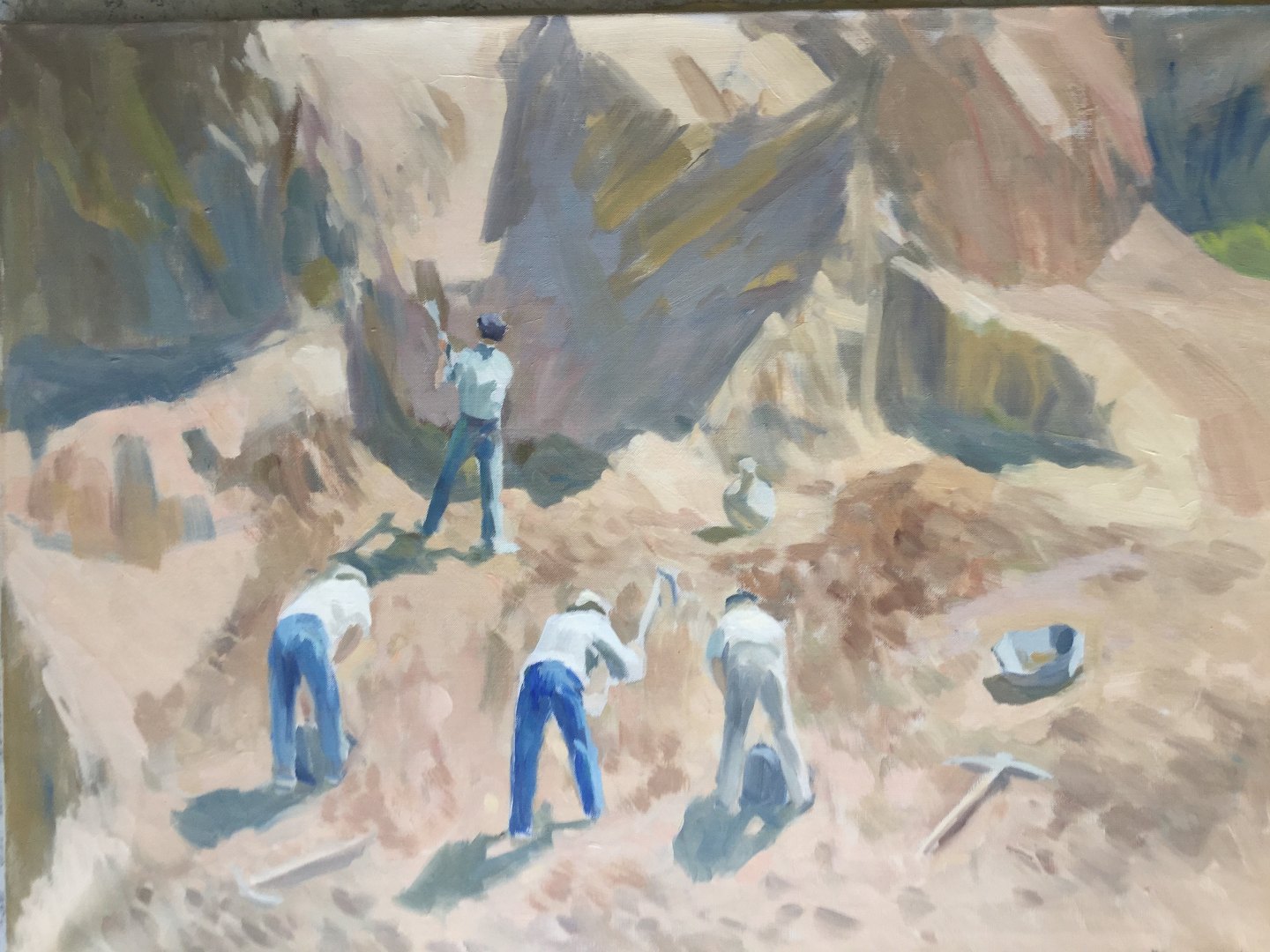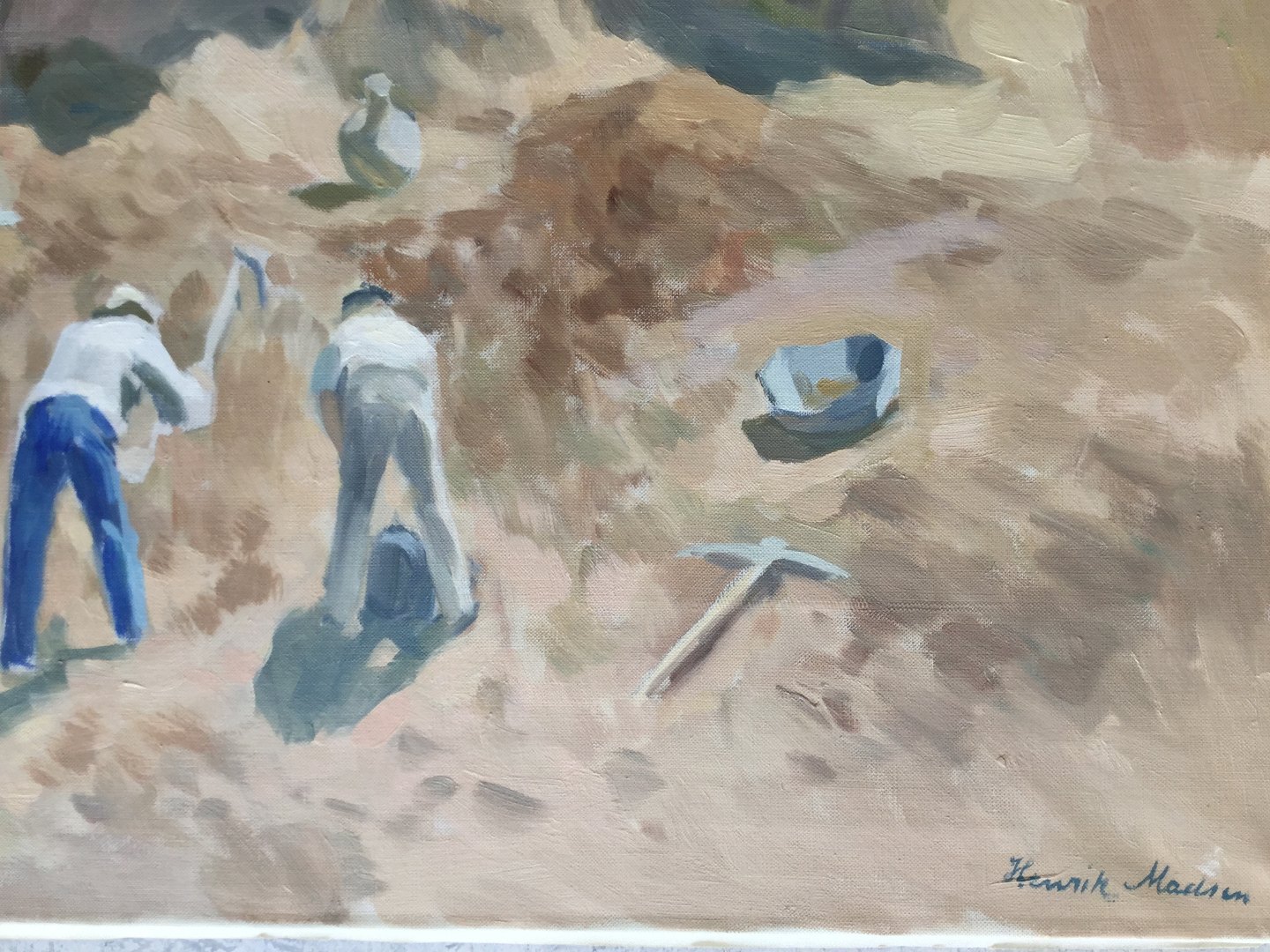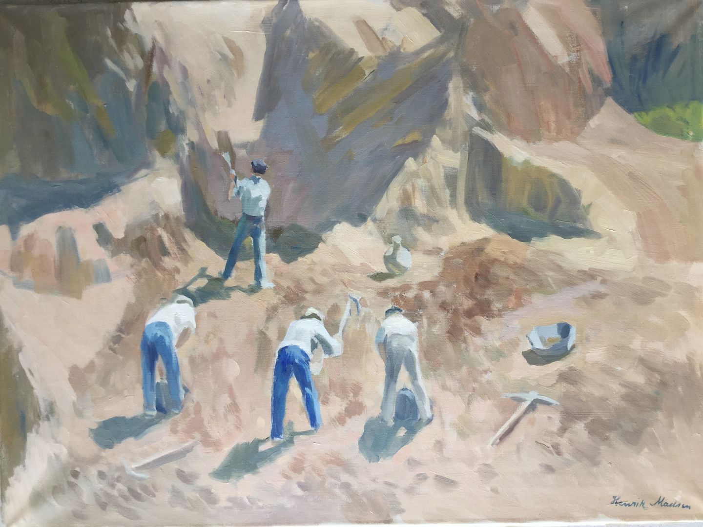 Maleri af Henrik Madsen - Arbejdere i stenbrud.