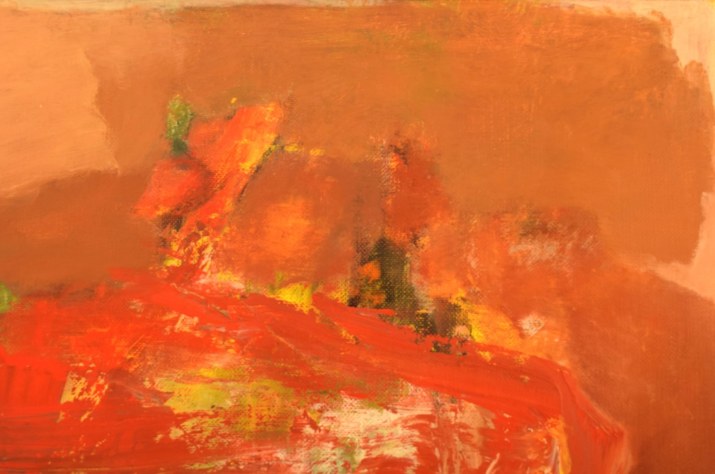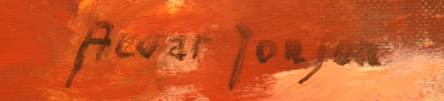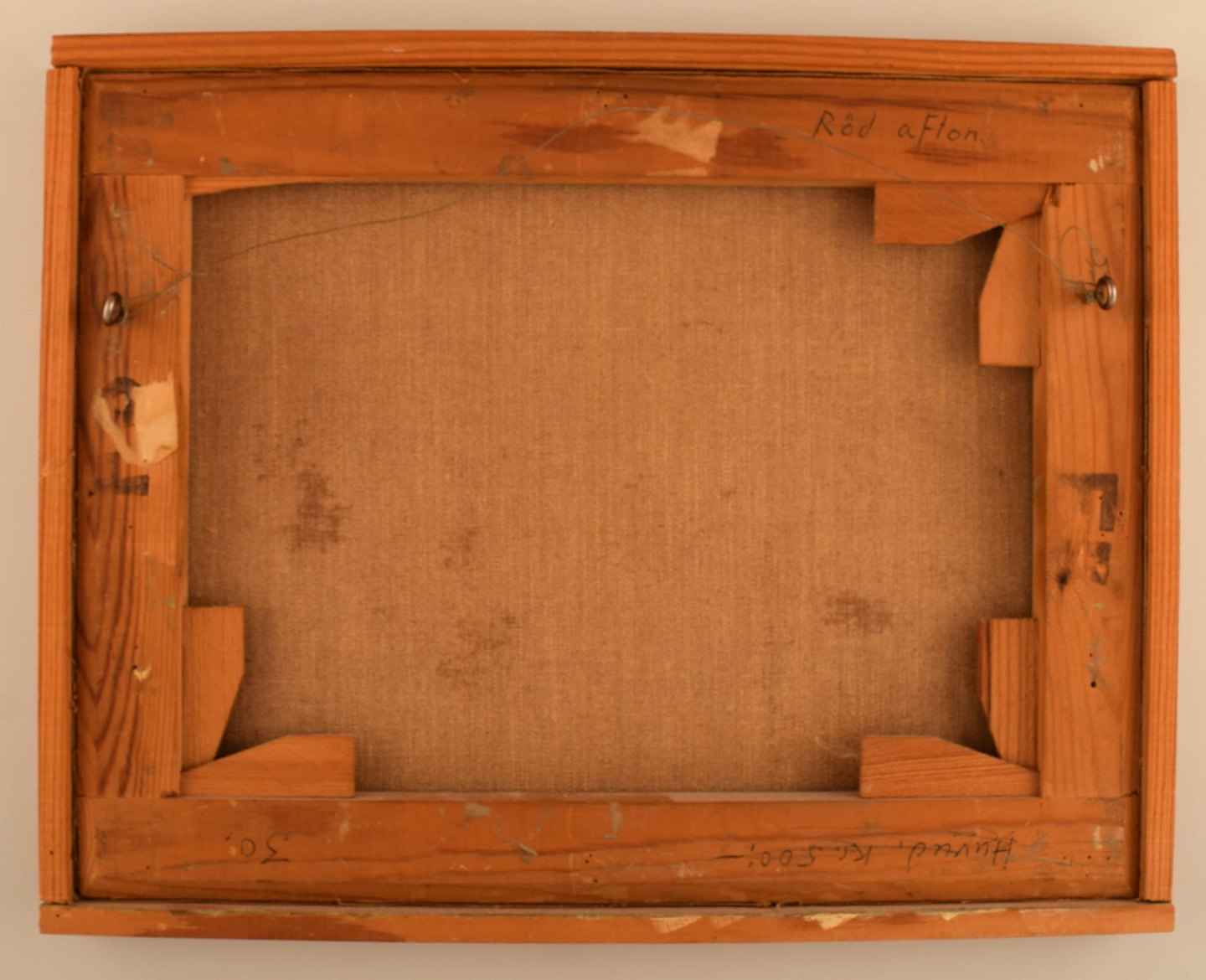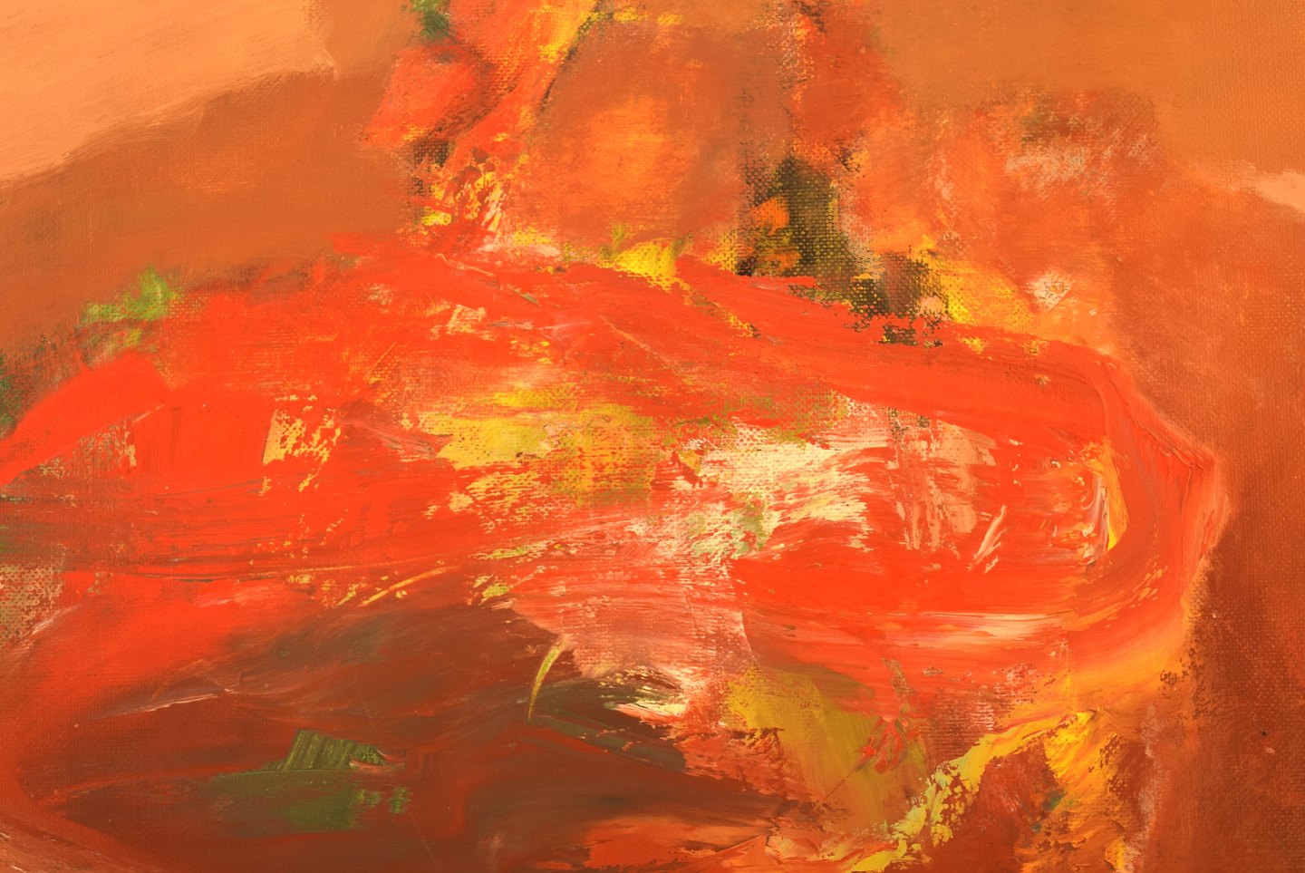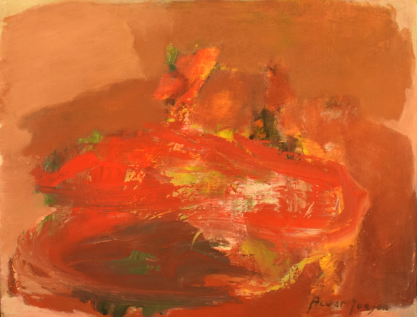Alvar Jonson (1914-1985), svensk kunstmaler. Olie på lærred. Abstrakt landskab. "Röd afton". 1960'erne.