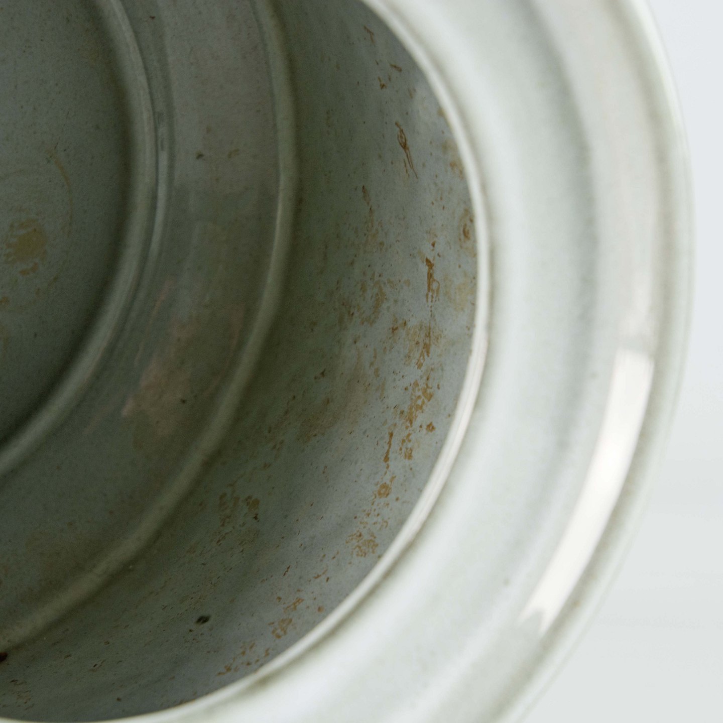 Pæn stand. Mindre område på indvendige side af låg er klinket.
