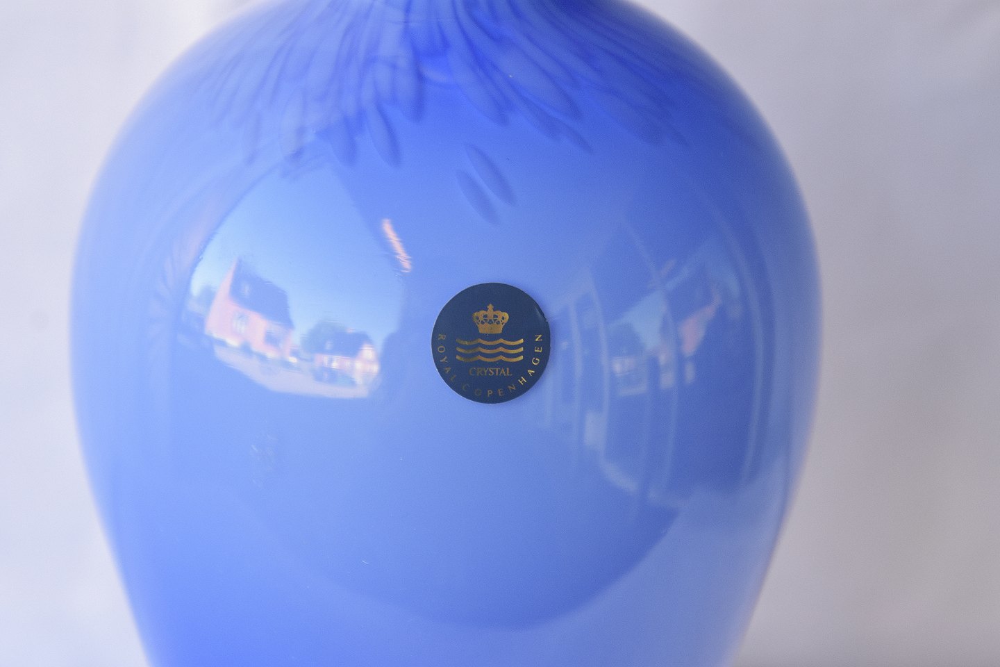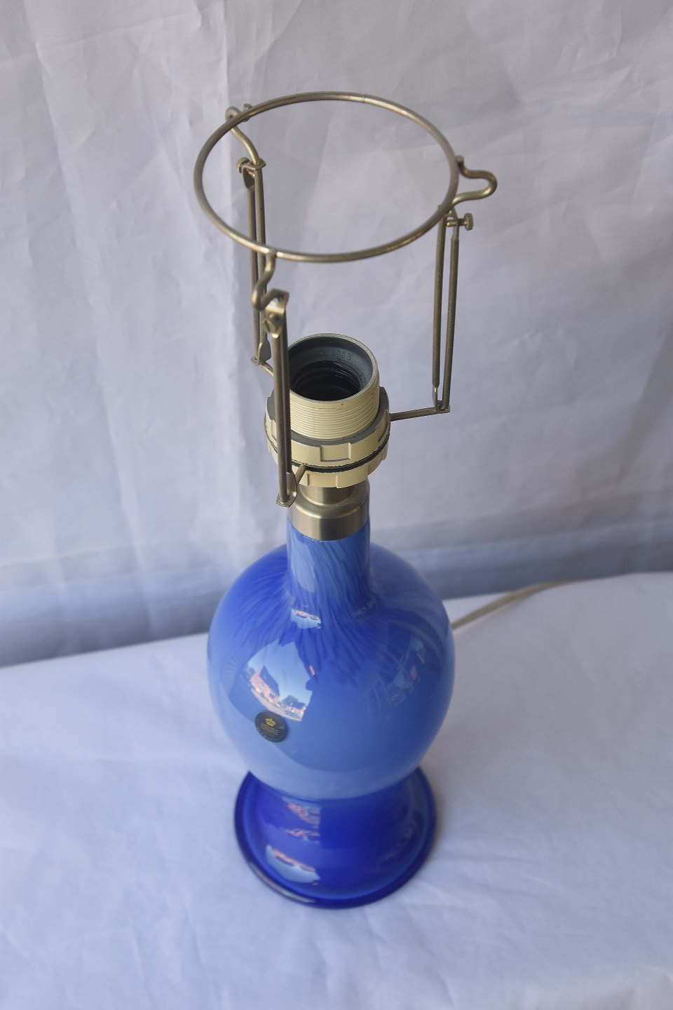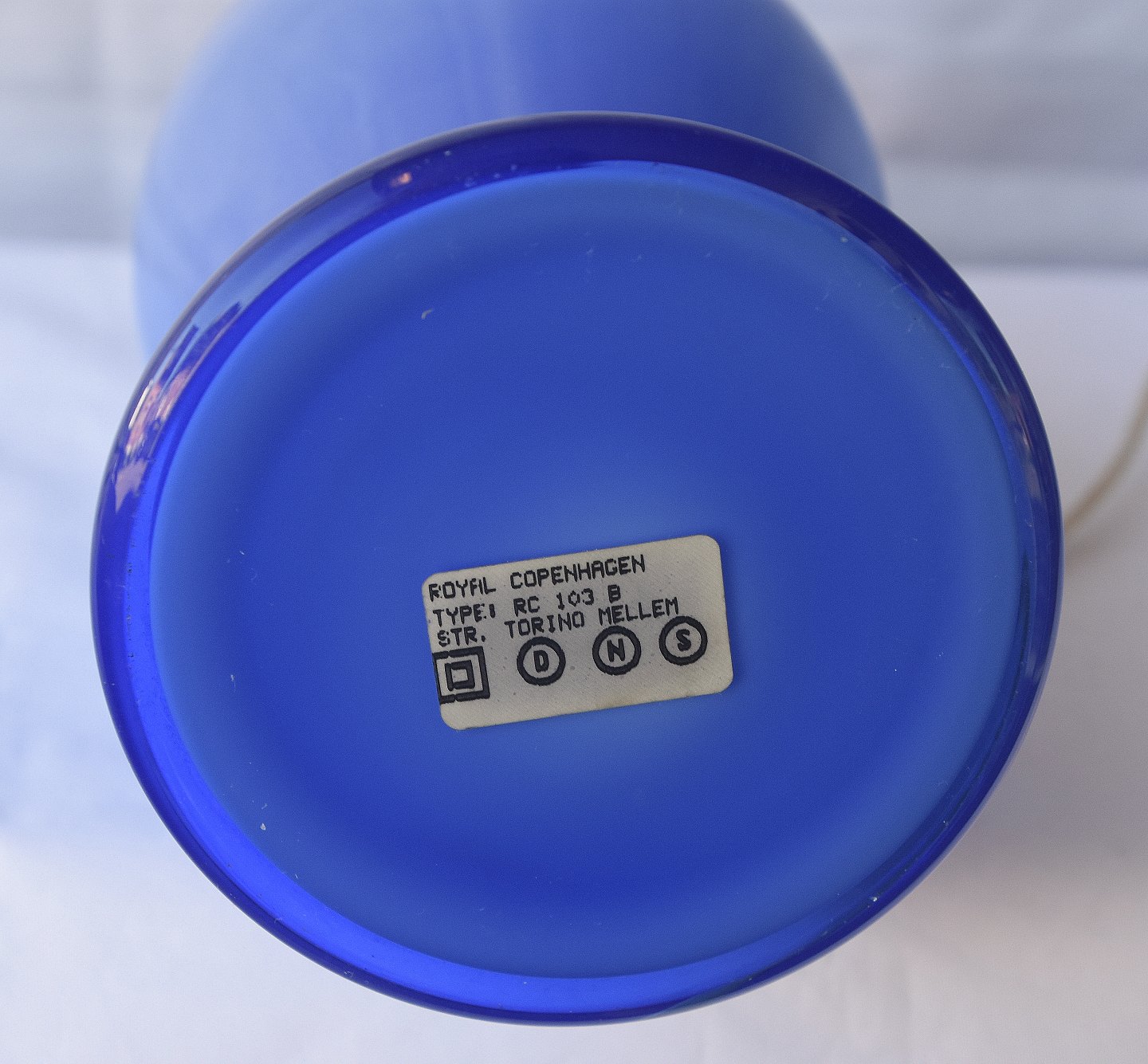 Torino, mellem, bordlampe Royal Copenhagen/ Holmegaards Glasværk, blå lampefod, type RC 103. Design Michael Bang for Holmegaards Glasværk 1970