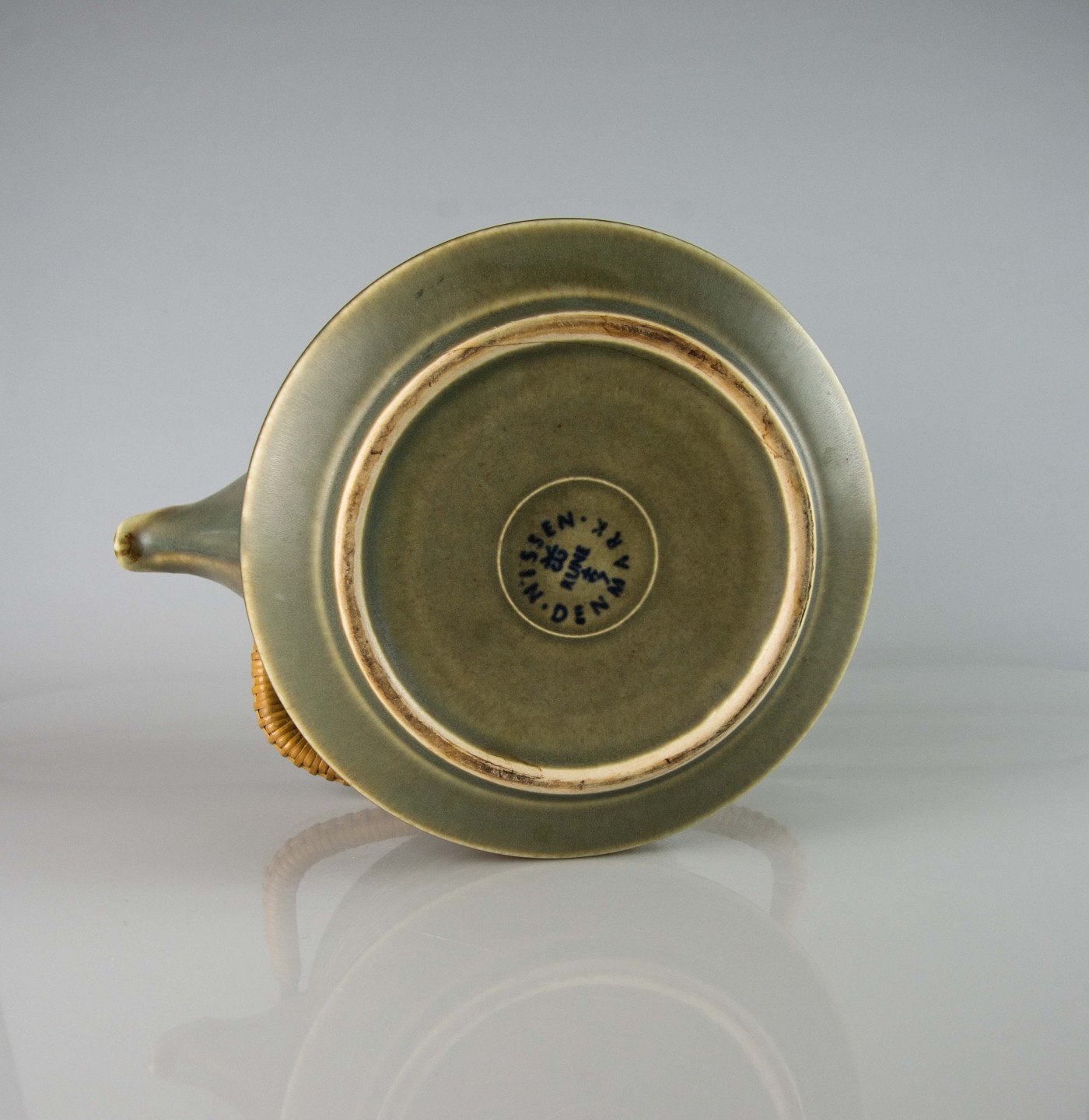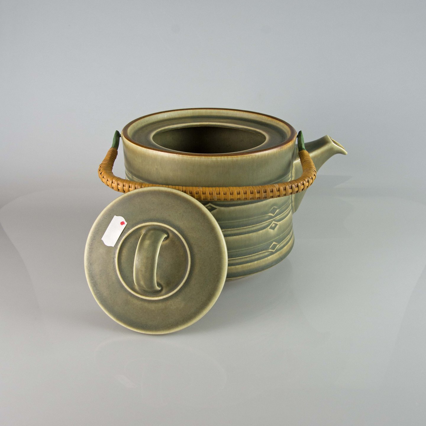 Tekande i stentøj med bast beklædt hank fra stellet Rune