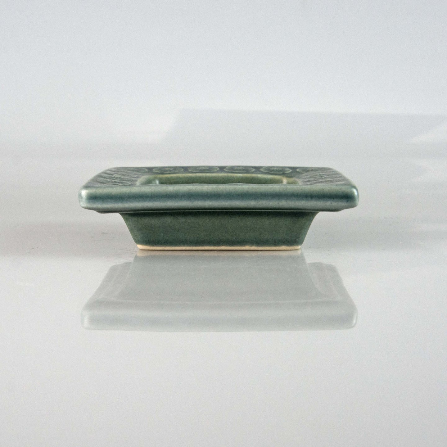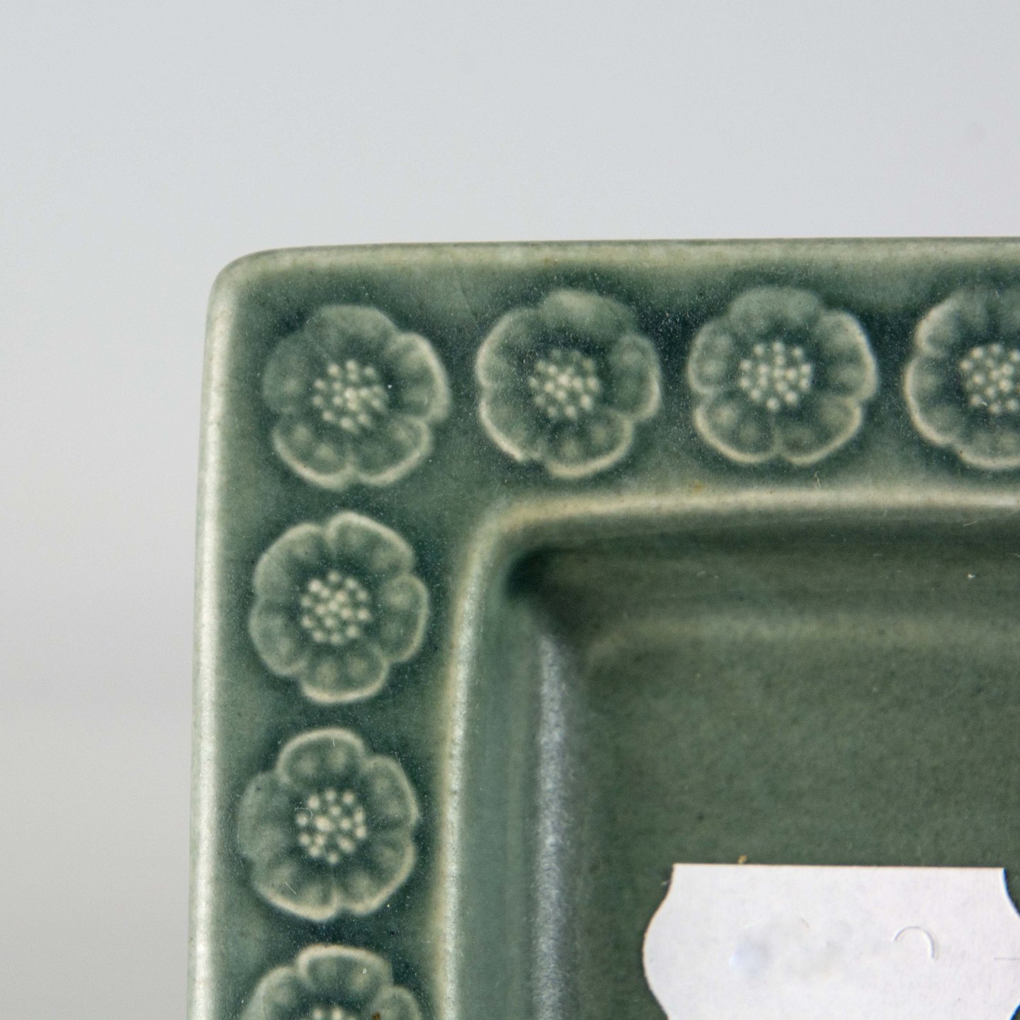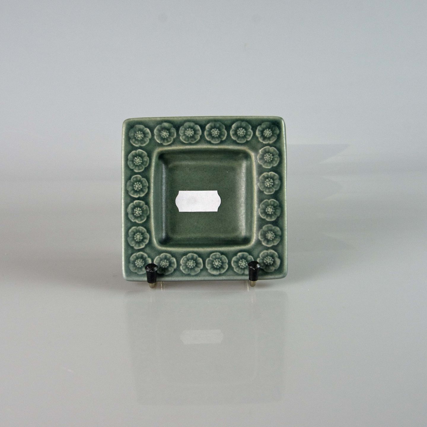 Stel i blågrøn stentøj med blomster motiver.