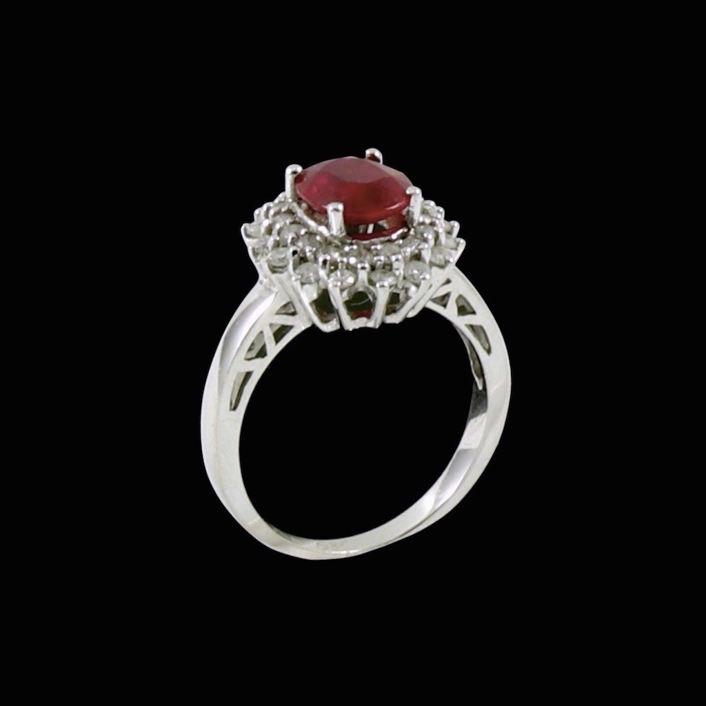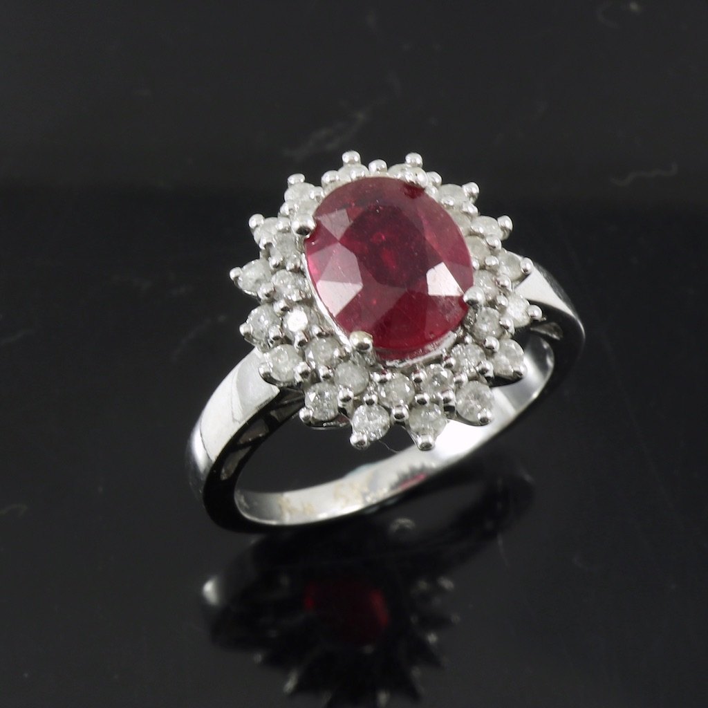 Cocktailring i 14k hvidguld med Rubin og diamanter.