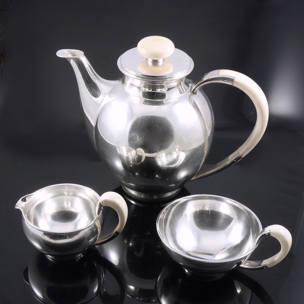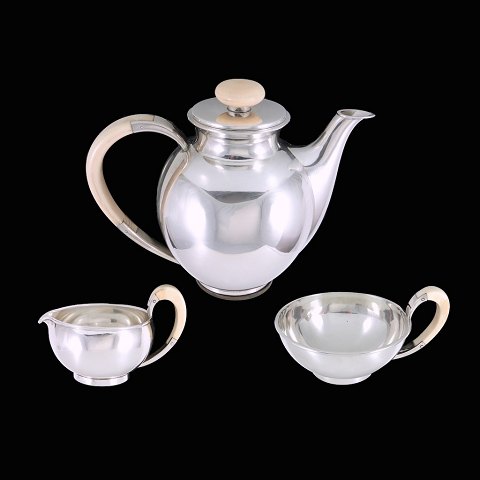 Svend Weihrauch 1899-1962 for F. Hingelberg. Kaffesæt i sterling sølv med greb i elfenben.