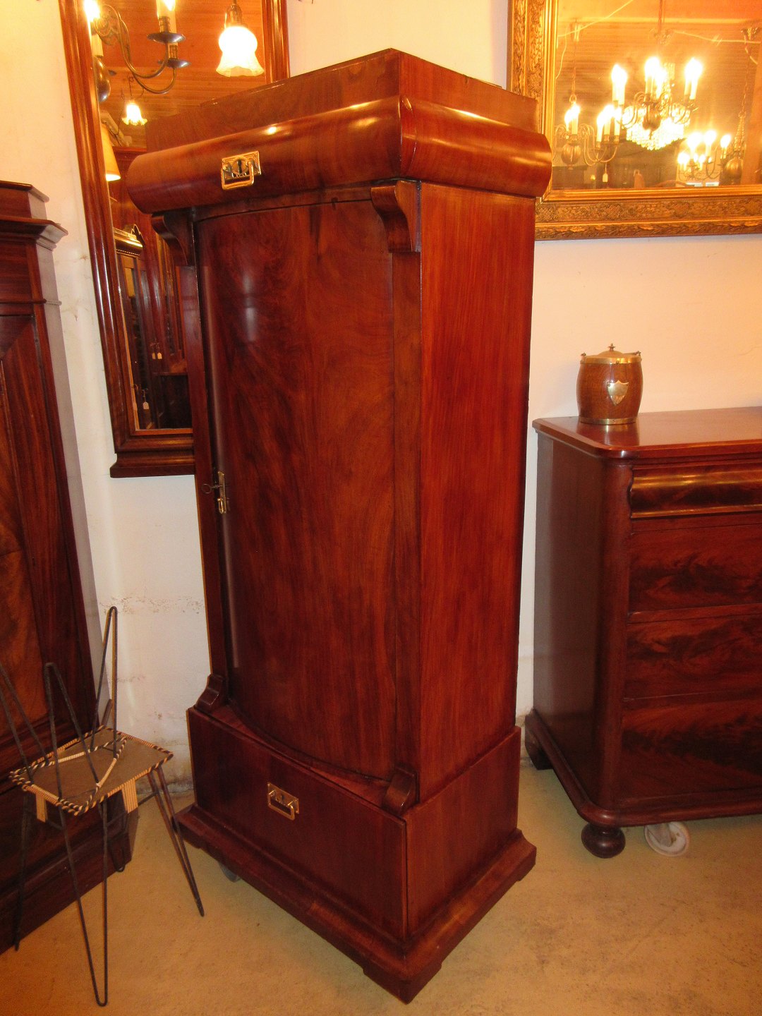 Mahogniskab / Sølvtøjsskab med 1 låge 2 skuffer Restaureret og Håndpoleret fin stand Mål H 145 B bund 66, top 61, Dybde bund 41, top 38,cm . 308/311