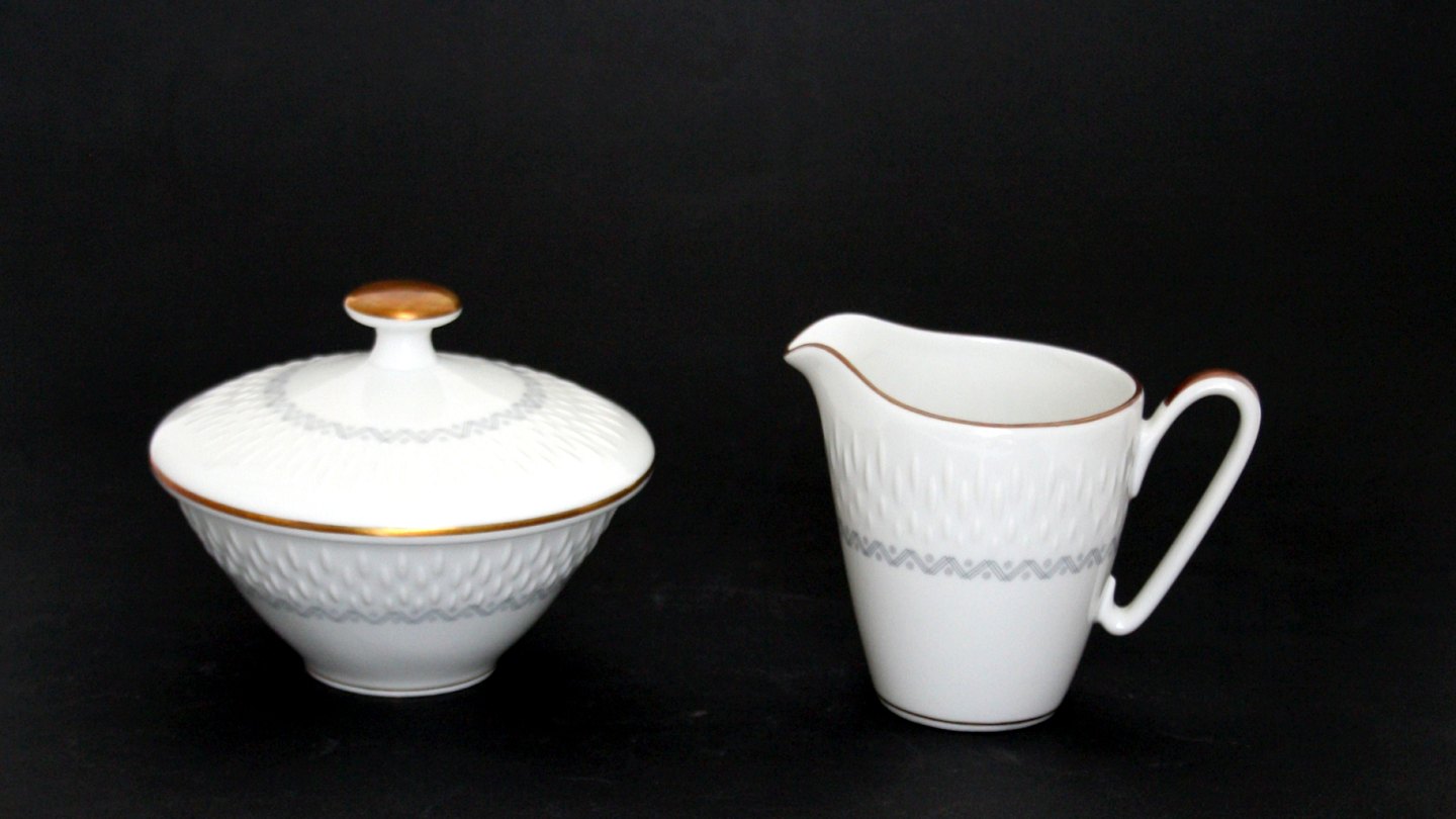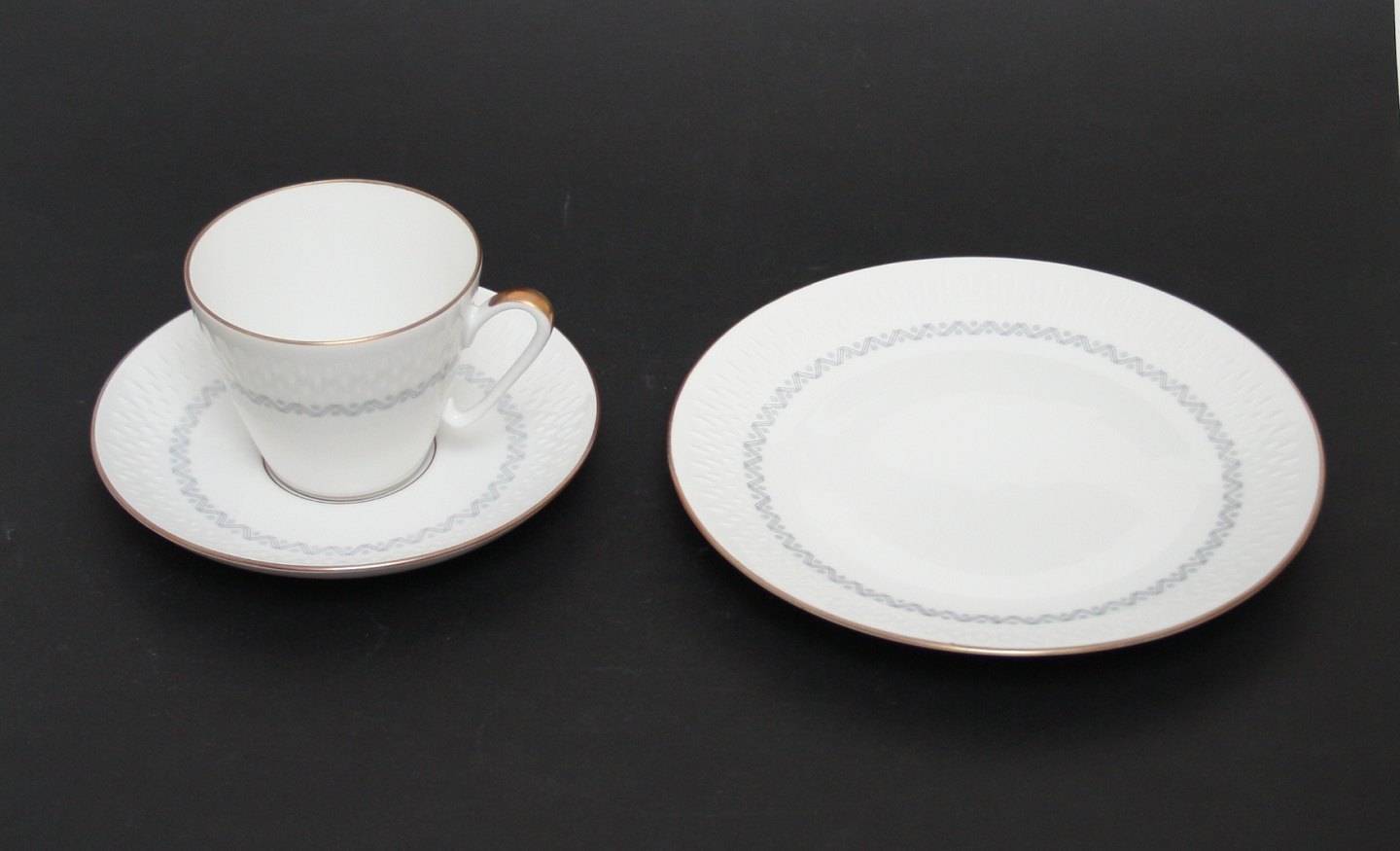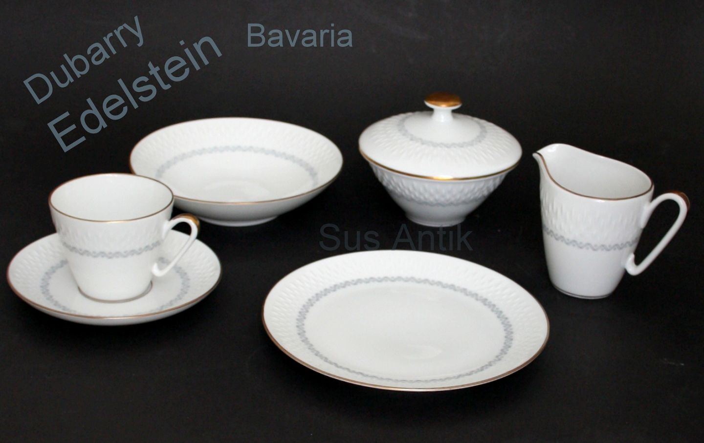 Edelstein, Bavaria, Dubarry, dele til kaffestel, hvidt porcelæn med grå bort og guldkant.