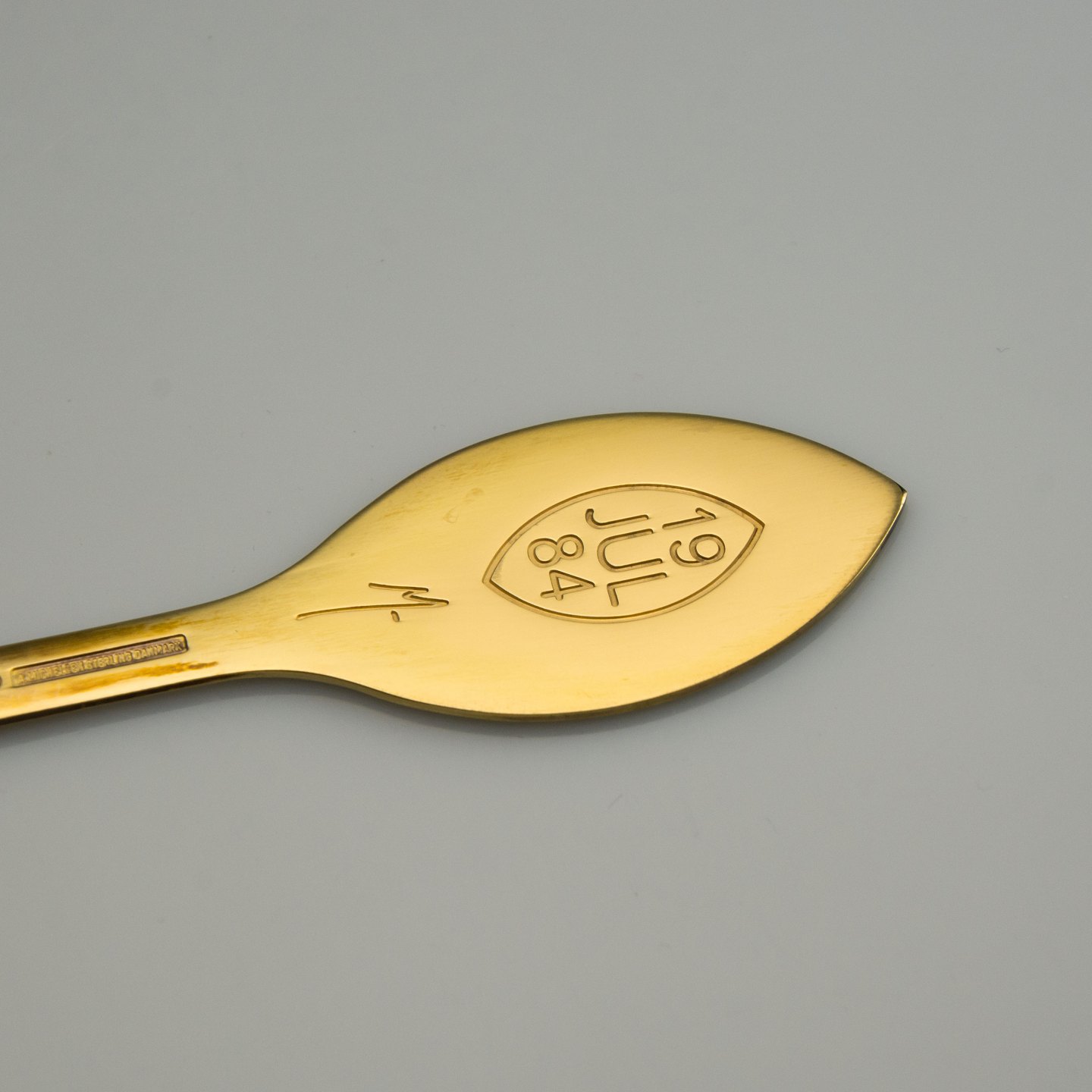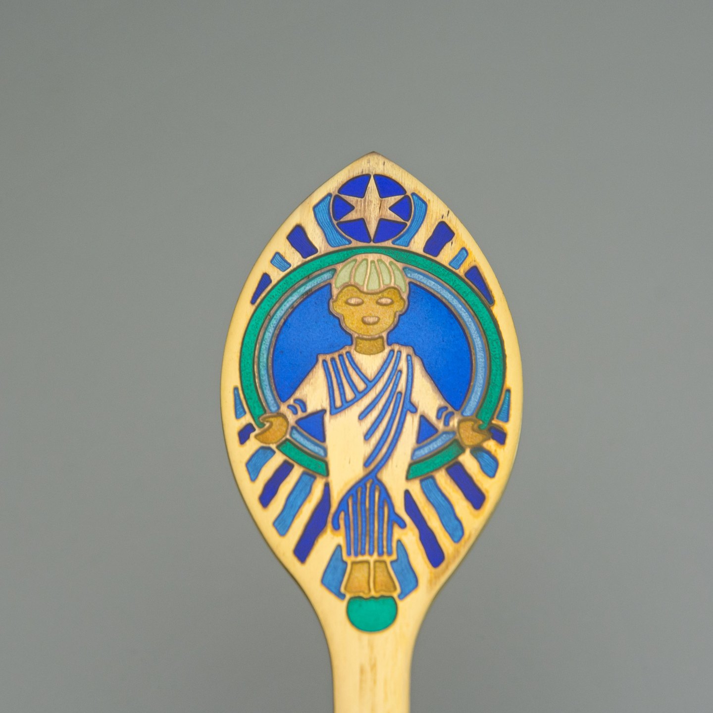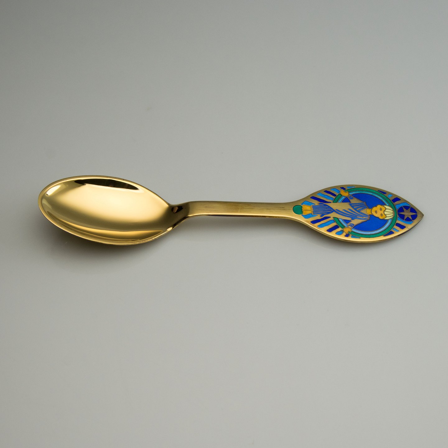 Juleske fra år 1984 med motiv af Jesusbarnet i forgyldt sølv