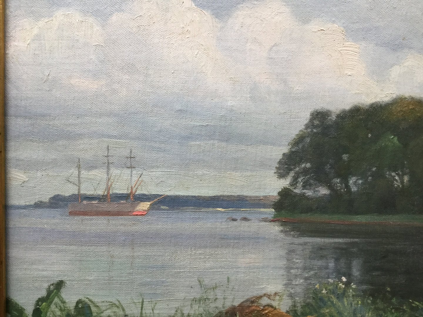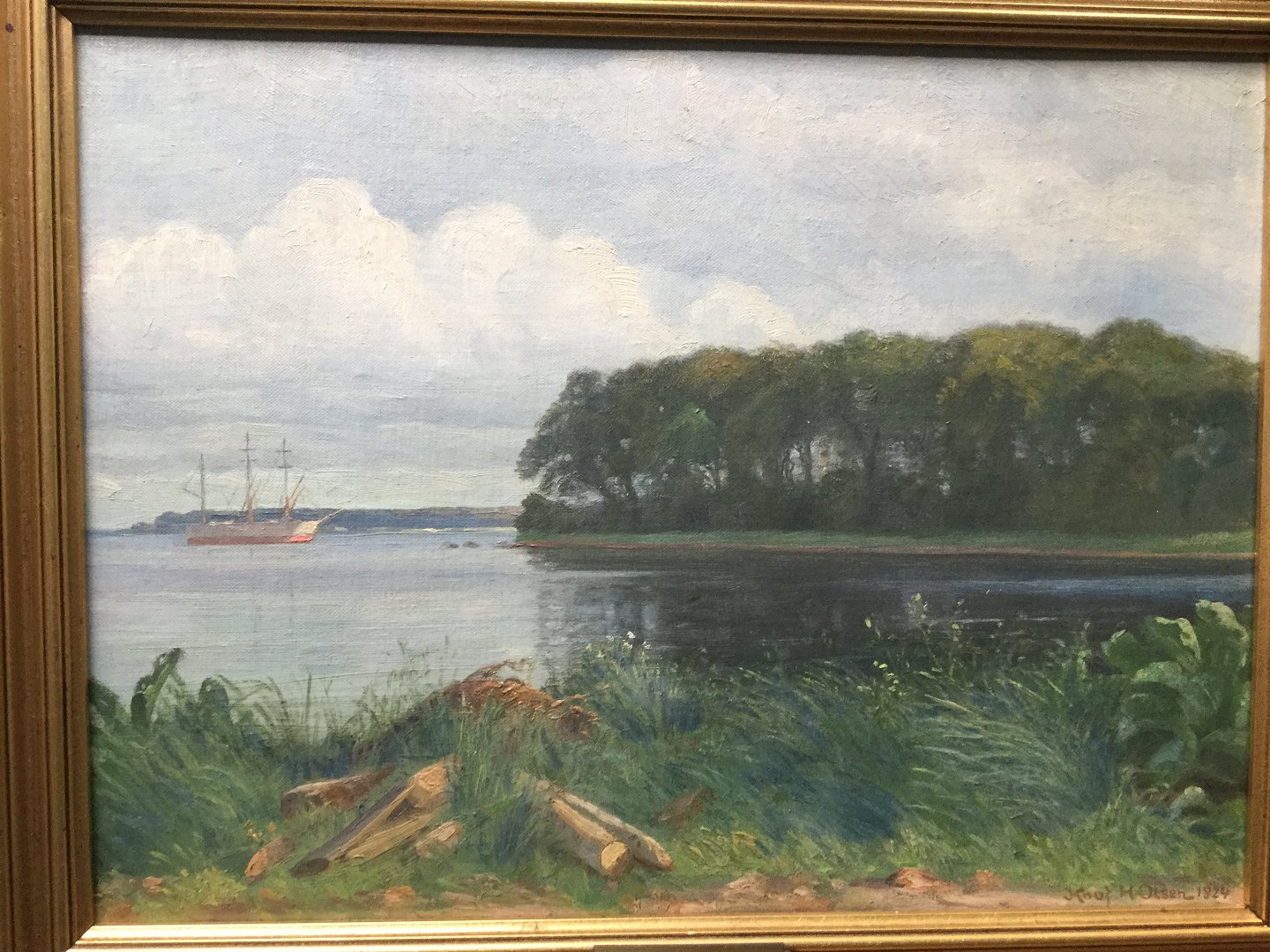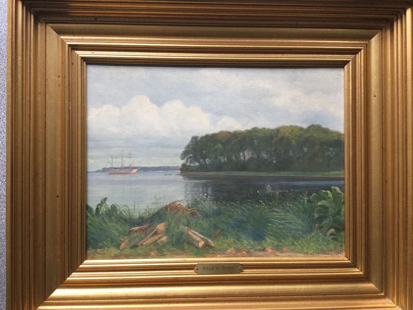 Maleri af Knud H. Olsen 1924 - Sejlskib i bugten ved Troense.