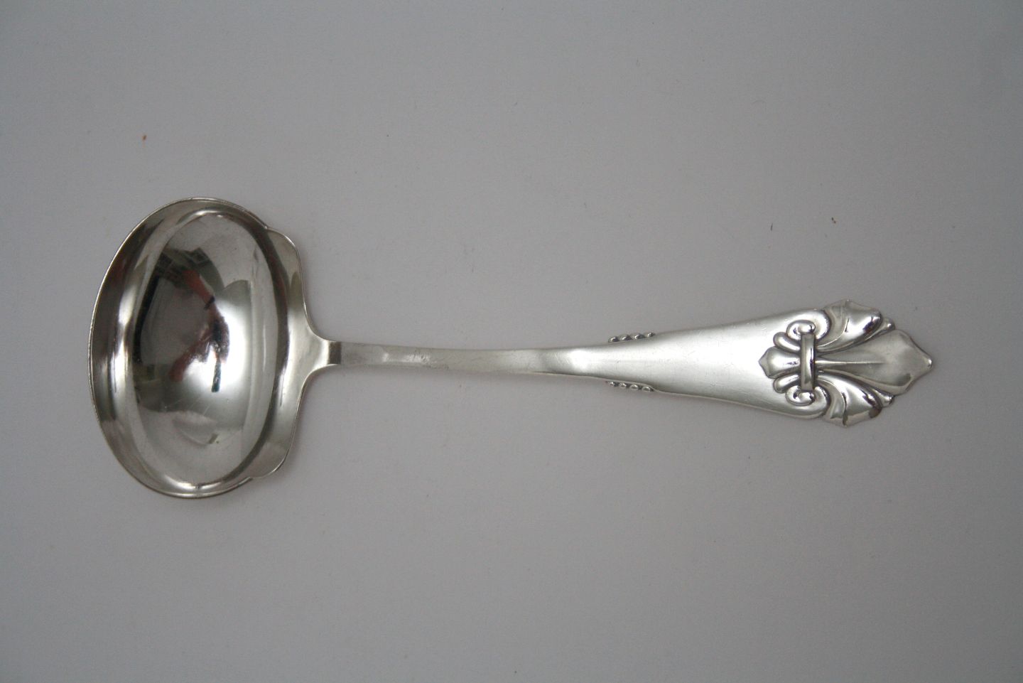 Fransk Lilje, sovseske. Tretårnet sølv. Længde 17 cm. Pris: 750 kr.