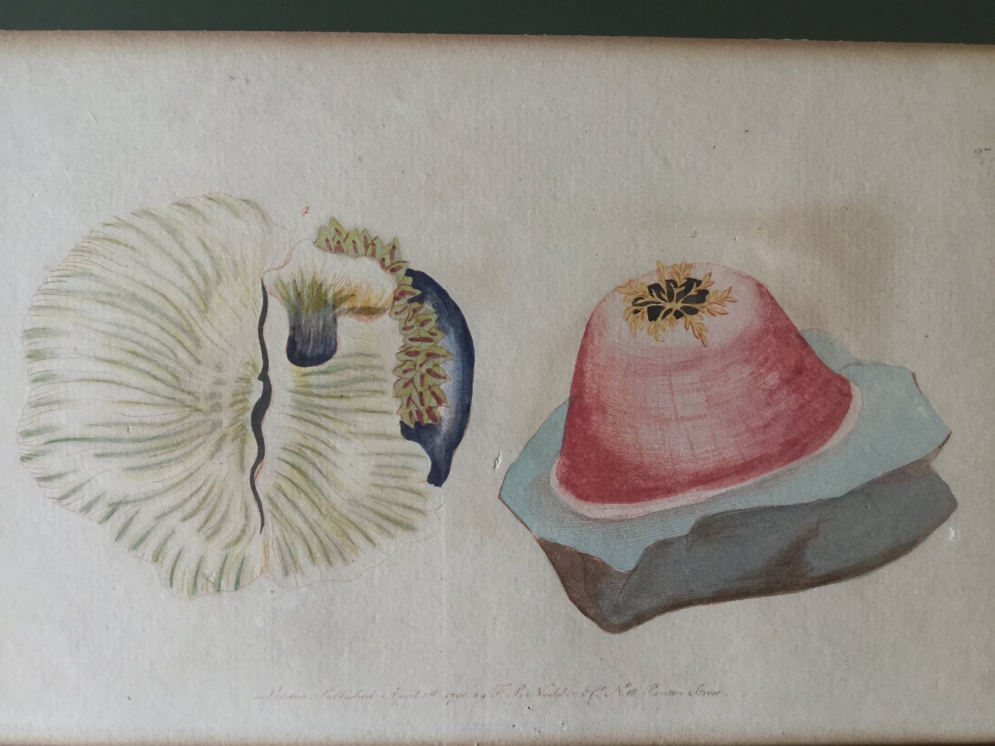 Engelsk, håndkoloreret kobberstik fra 1790 af George Shaw - Søanemone.