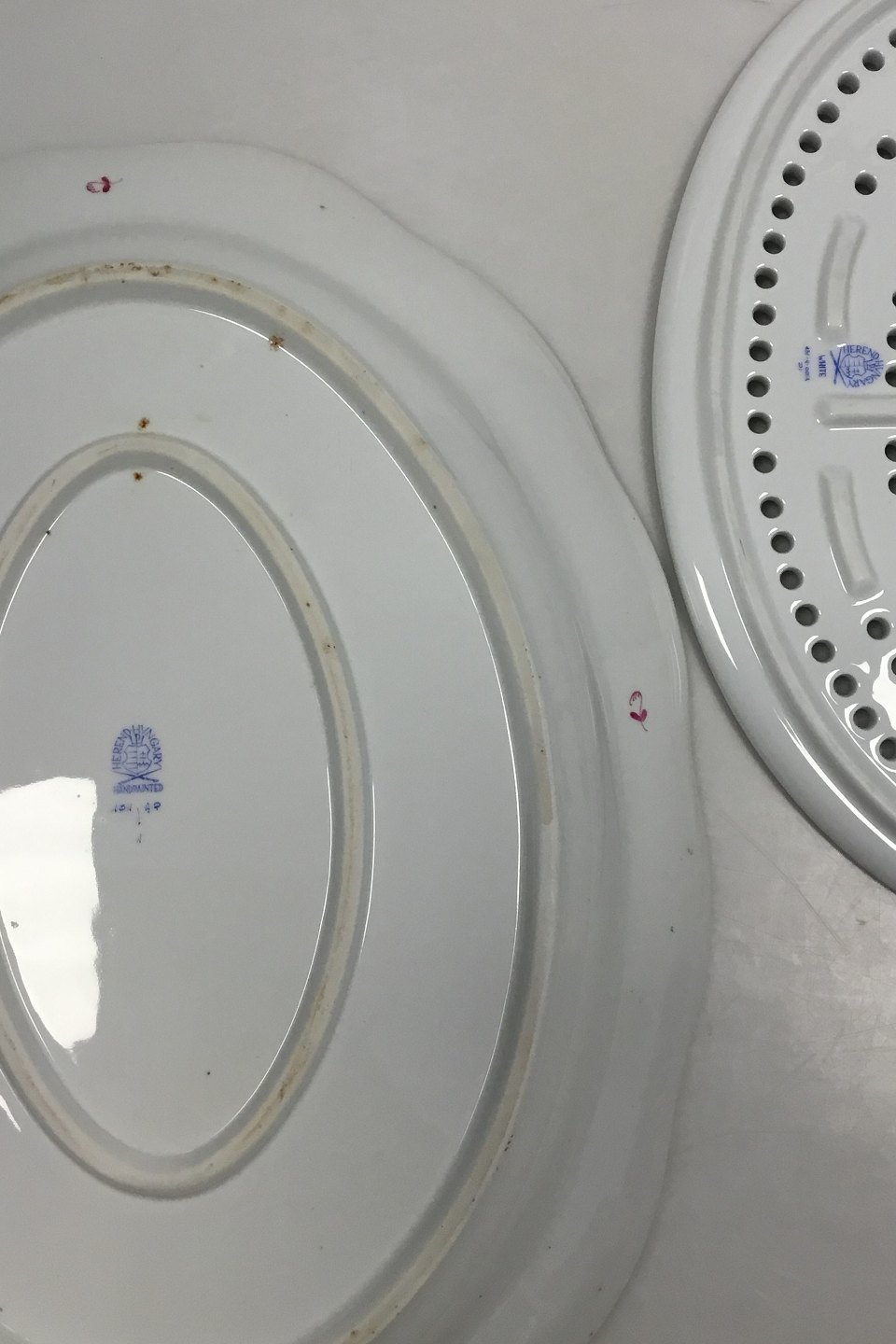 Herend Hungary Apponyi Purple Oval Dish No 101/431. Measures 41 cm / 16 9/64 in. x 31 cm / 12 13/64 in.