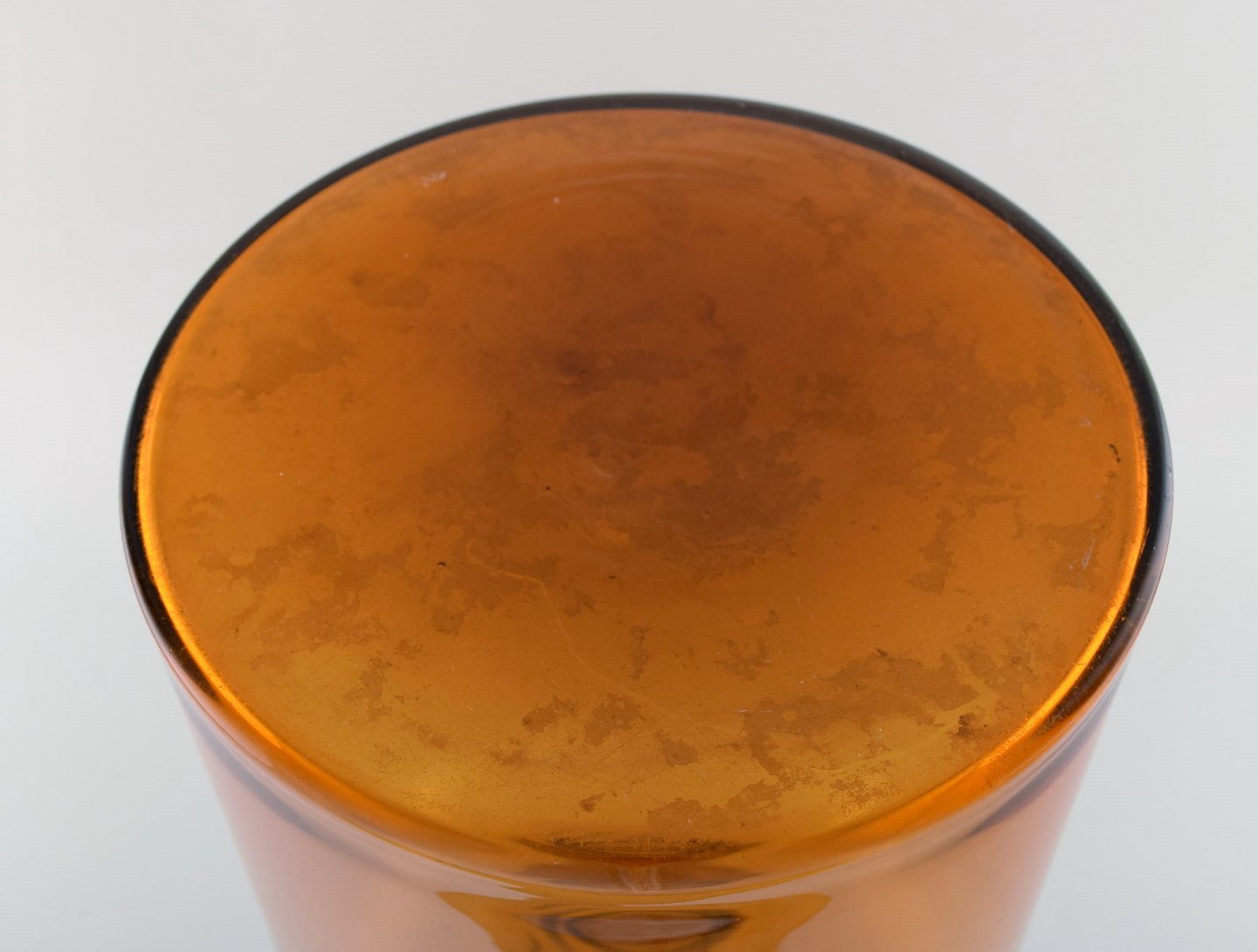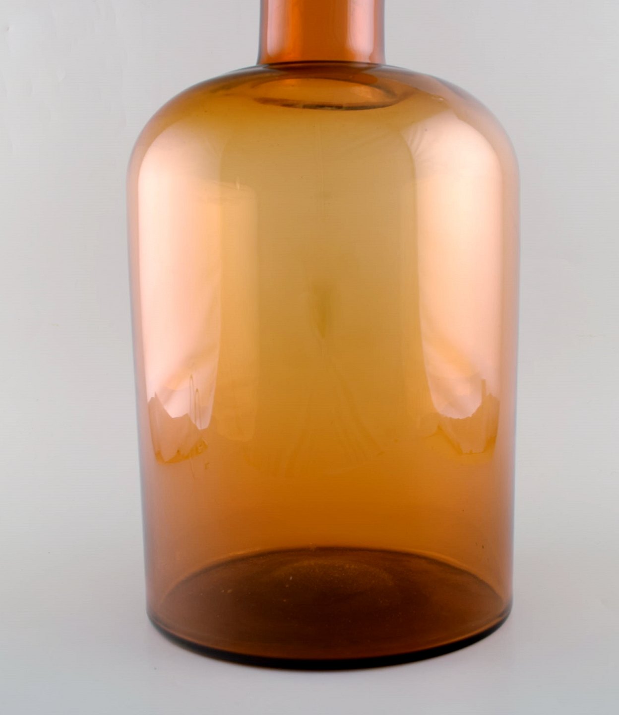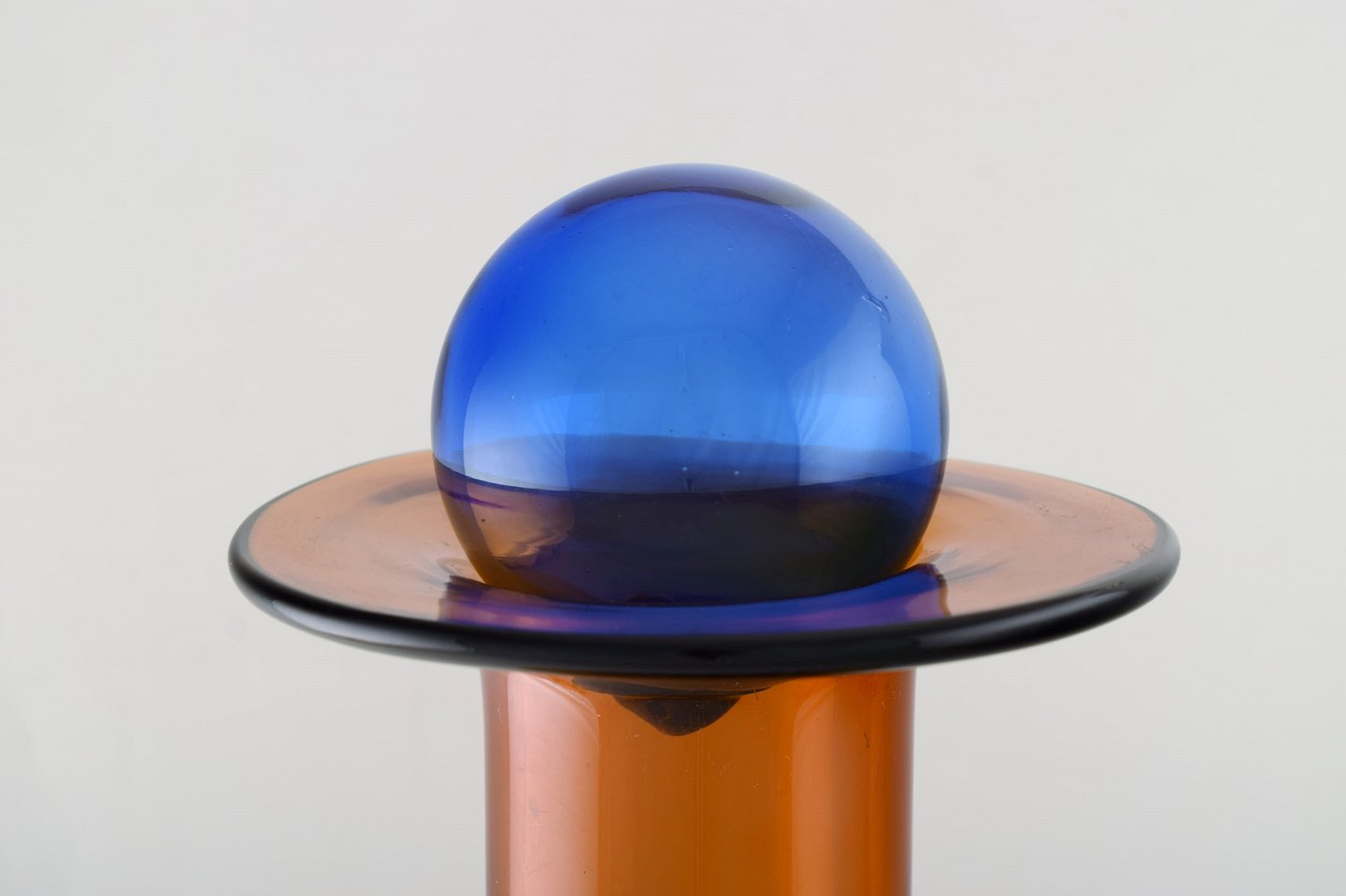 Otto Brauer for Holmegaard. Kolossal vase/flaske i brunt kunstglas med blue kugle. 1960'erne.