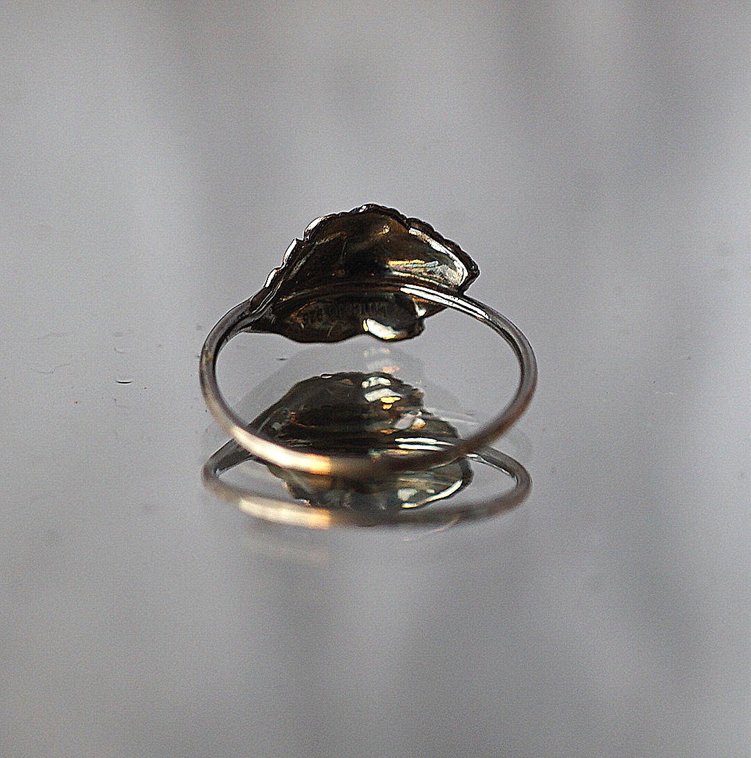 Ringen er dekoreret med et blad, hvorpå der sidder en, indfattet, hjerteformet sten. Ringen er en del af Peacock kollektionen.