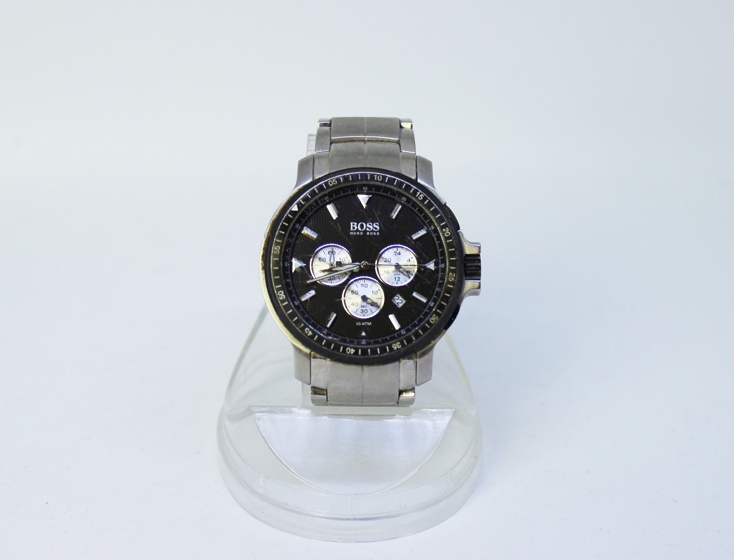 Hugo Boss men's watch of stainless steel with quartz and chronograph.